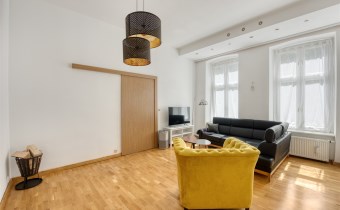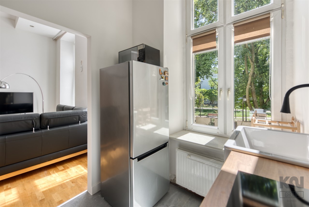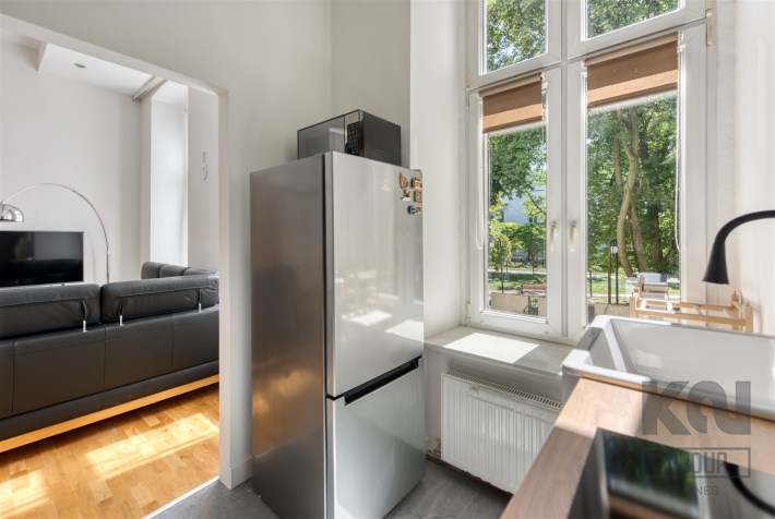 We present a very atmospheric and spacious one-bedroom apartment with an area of 55.30 m2, located on the first floor in the rear annex of Juliusz Pfeifer's tenement house in the very center of Łódź at 71 Piotrkowska Street (opposite Moniuszki Street).