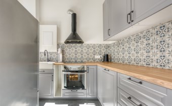 - a kitchenette equipped with an induction hob, hood, oven, microwave, dishwasher, and fridge-freezer;