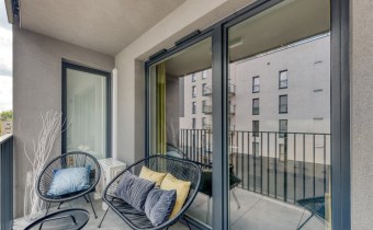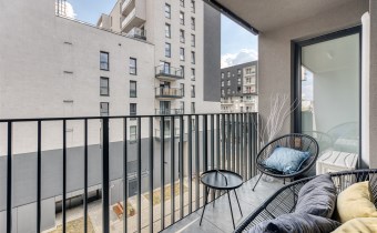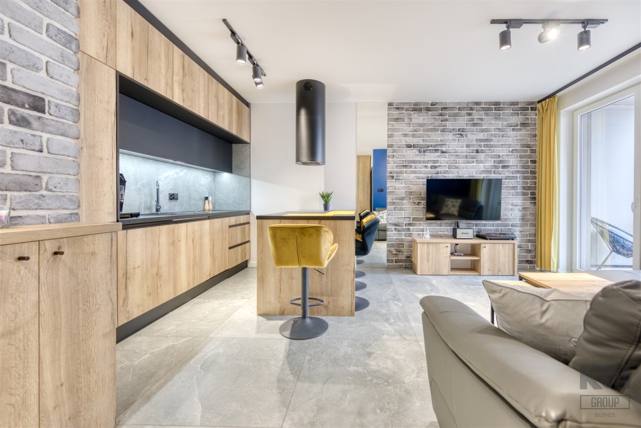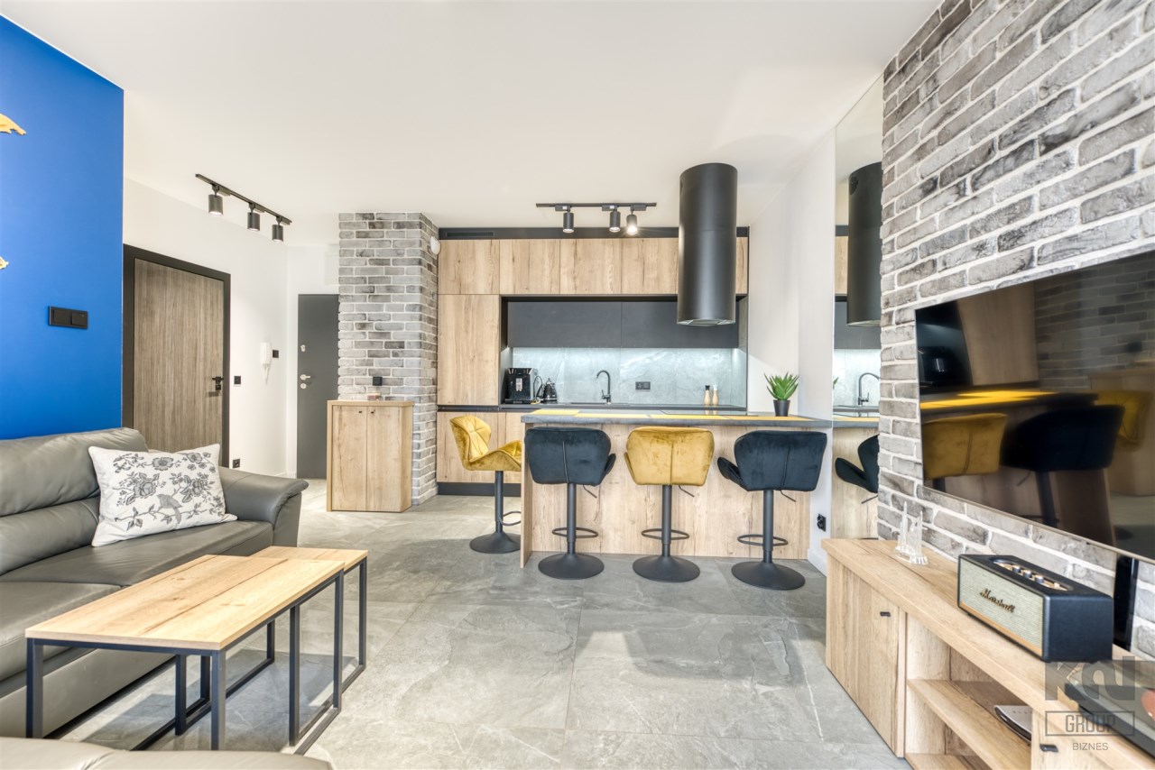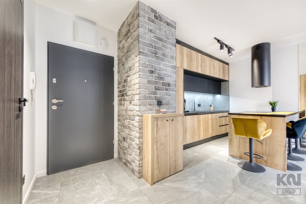 We present a brand new 1-bedroom apartment of