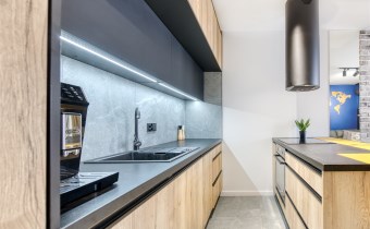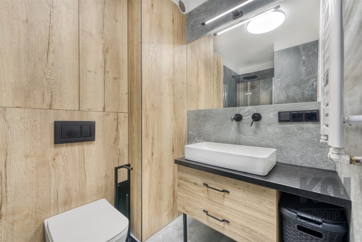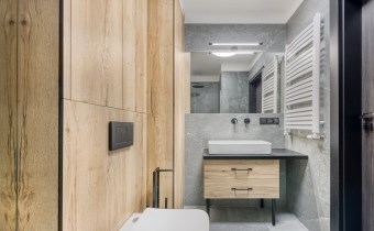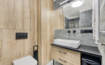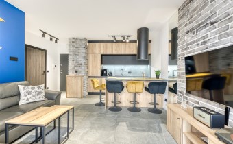 - kitchenette (equipped with: fridge/freezer, oven, induction hob, extractor hood, dishwasher, basic table and cookware, coffee machine and washing machine with dryer);