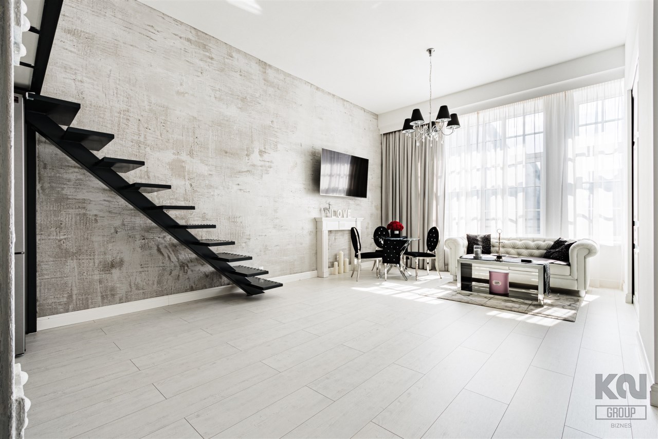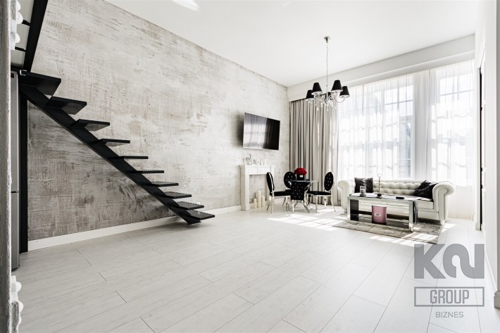 An attractive, glamorous loft with an area of 54.23 m2 is available for rent, located on the first floor of a completely revitalized, post-industrial building in the Tobaco Park complex at 64A Kopernika Street.
