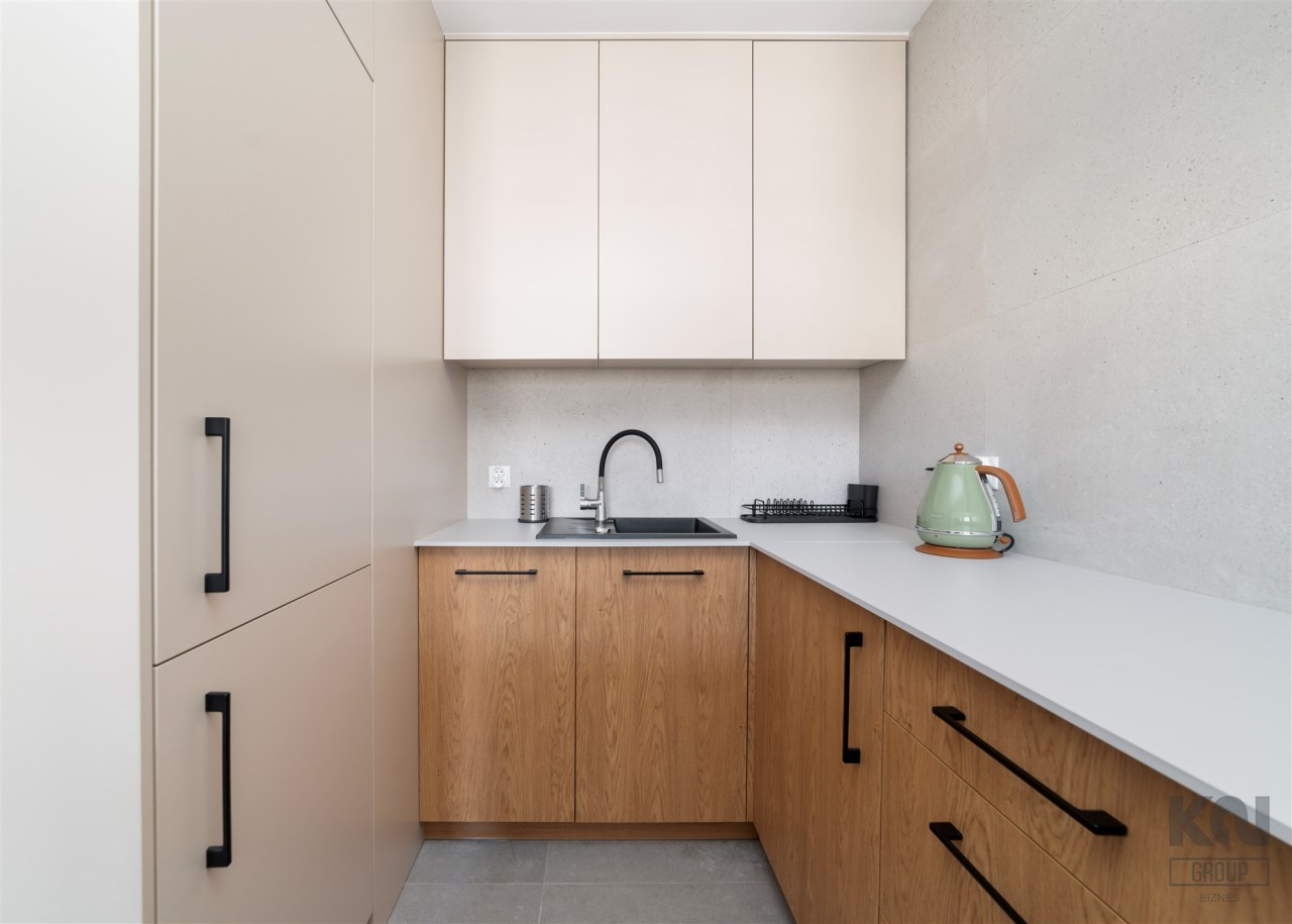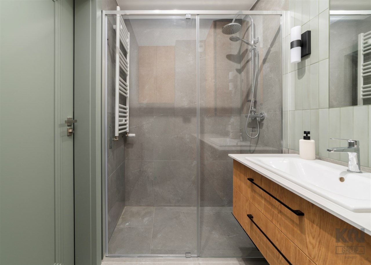 Within 100 meters, there is a grocery store, a bakery, and other service outlets. The neighborhood is very well connected to the Łódź Airport and the Łódź Kaliska railway station.