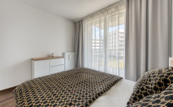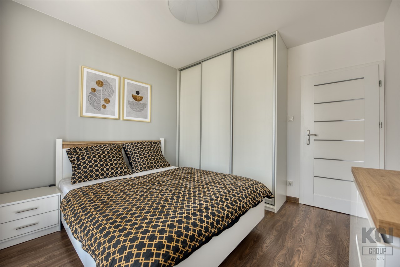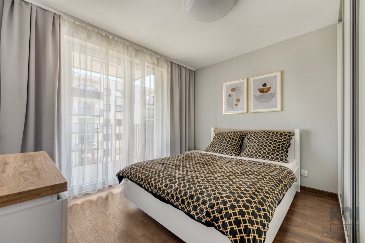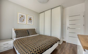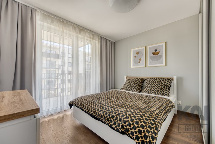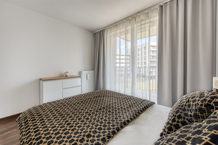 - cozy bedroom with a large bed, spacious wardrobe with access to the second balcony;