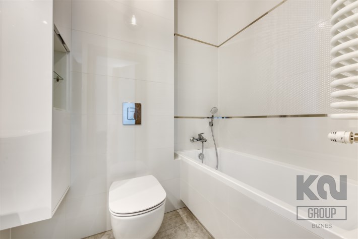 - łazienka z WC wyposażoną w kabinę prysznicową i pralkę;