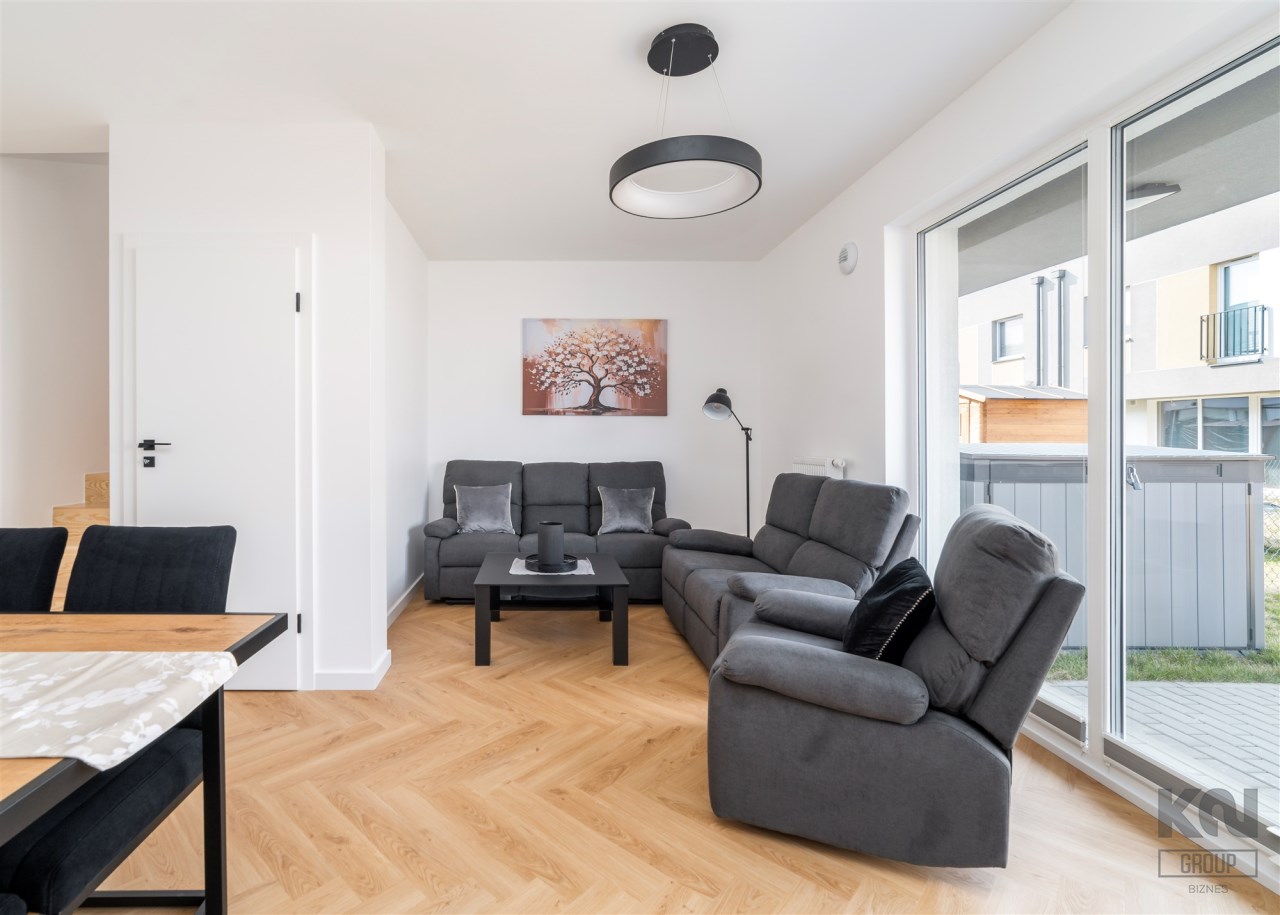 Przedstawiamy do wynajęcia nowy, 5-pokojowy, wykończony w wysokim standardzie dom szeregowy o powierzchni użytkowej 84,12 m2 usytuowany na ogrodzonym, kameralnym osiedlu "Zastawna Od Nova" na granicy Łodzi i Gadki Starej tuż przy kompleksie rekreacyjnym Stawy Stefańskiego.