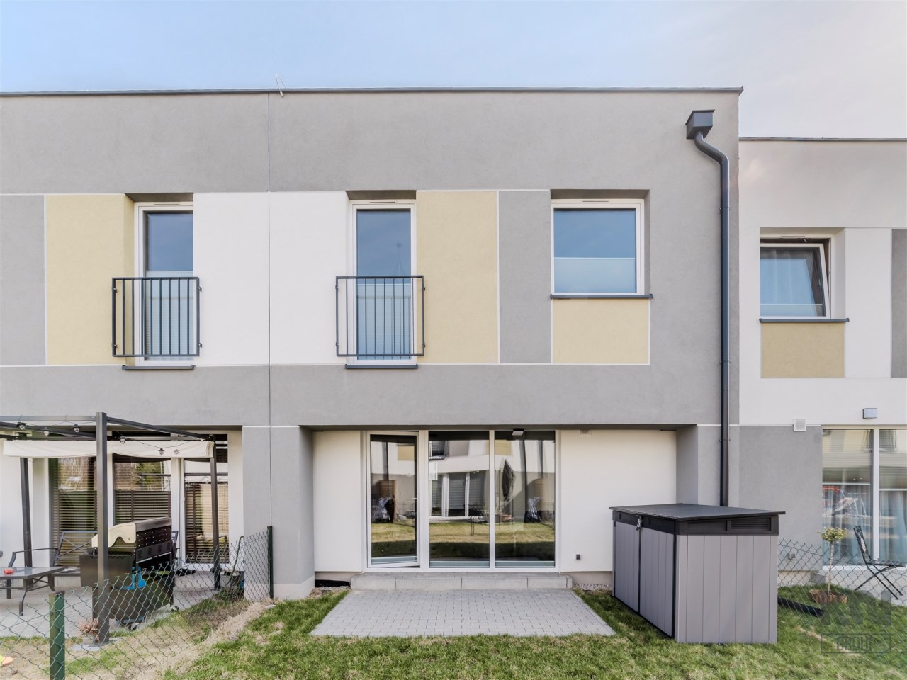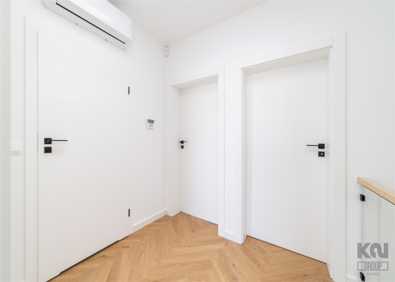 Dom posiada system klimatyzacji oraz alarm podłączony do grupy interwencyjnej i oferuje 2 poziomy: