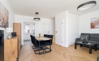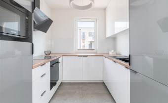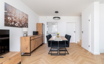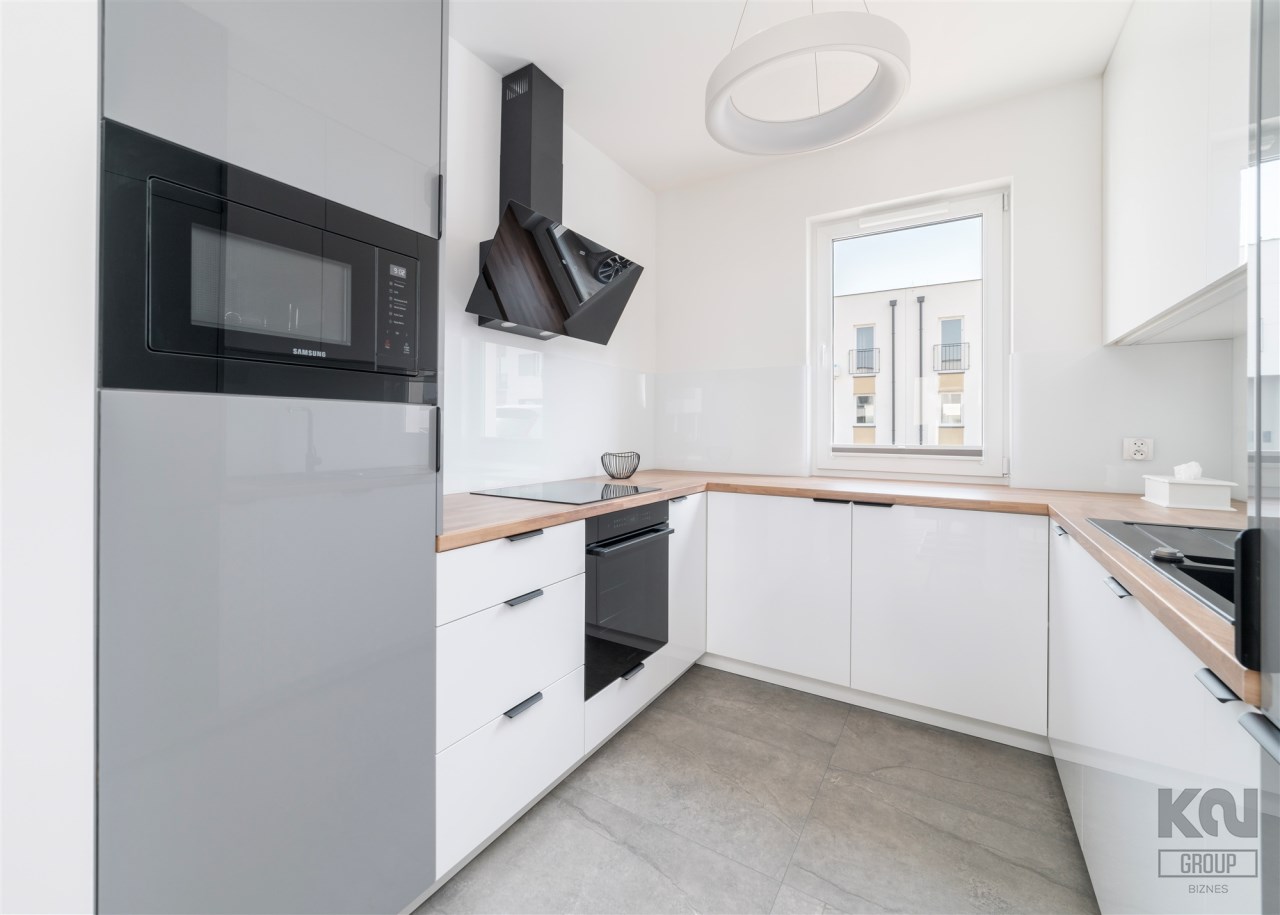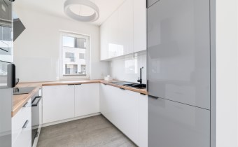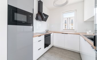 - aneks kuchenny wyposażony w płytę indukcyjną, okap, piekarnik, mikrofalę, zmywarkę oraz lodówkę z zamrażarką;