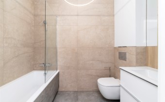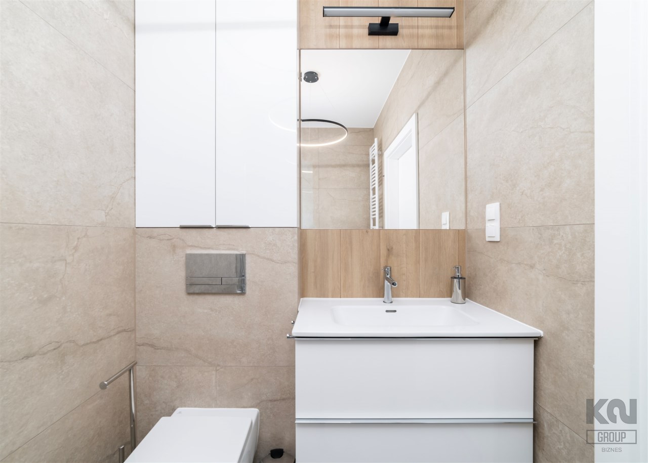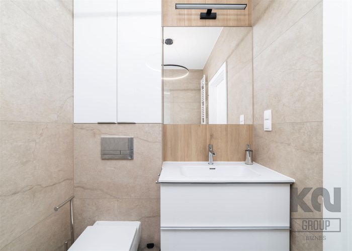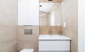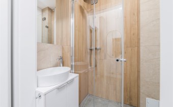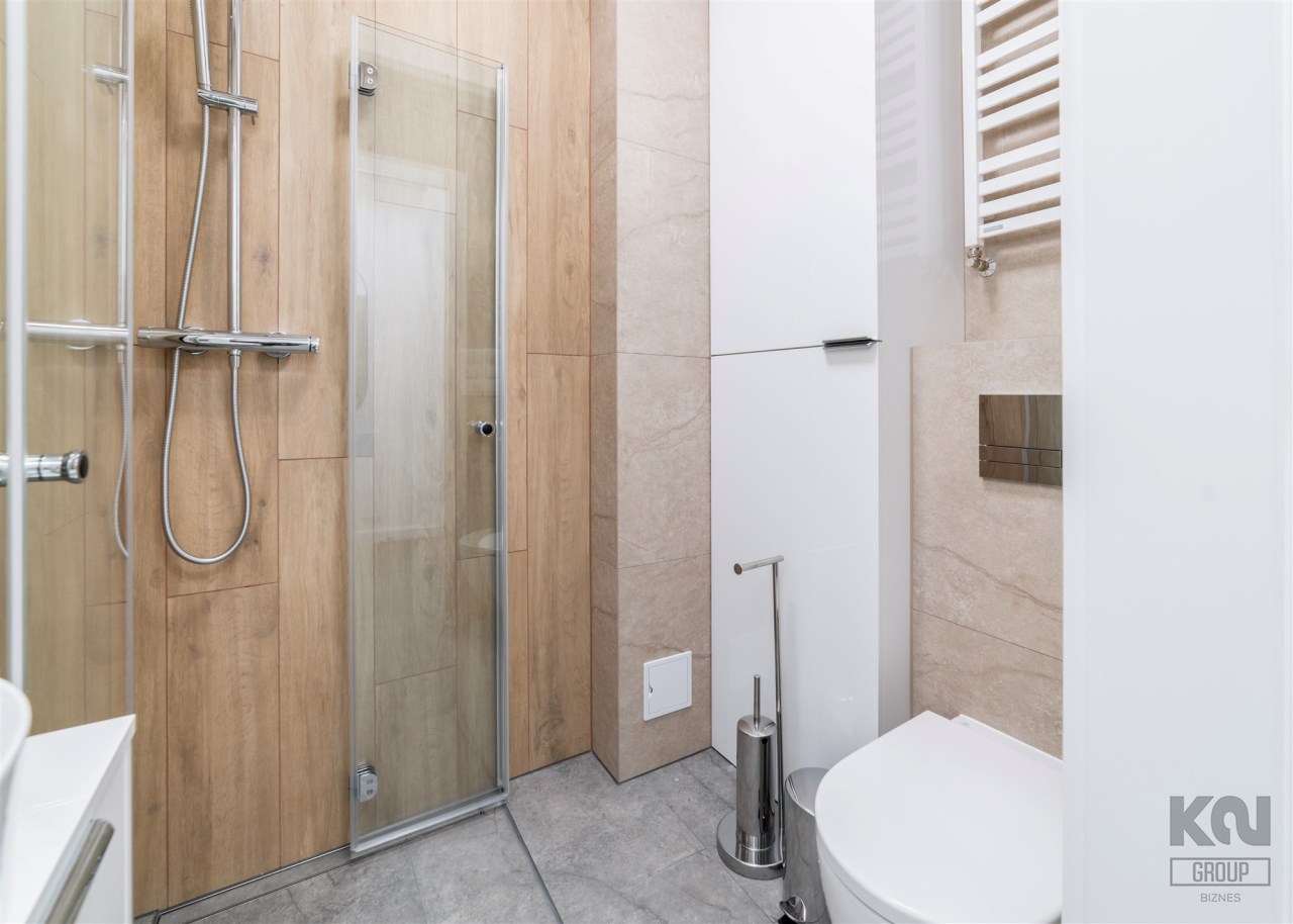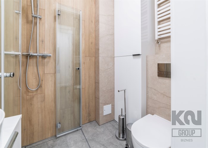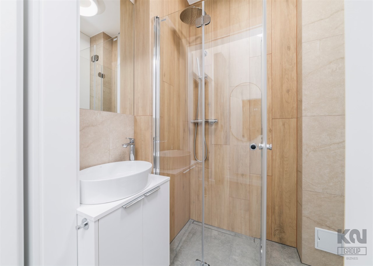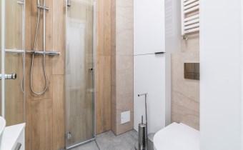 - łazienka z WC wyposażona w kabinę prysznicową i umywalkę;