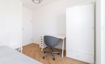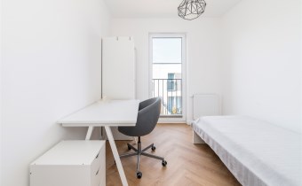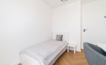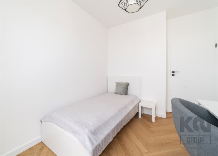 - pokój gościnny z pojedynczym łóżkiem, biurkiem i krzesłem oraz szafą;