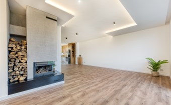 - wygodny, słoneczny salon z kominkiem oraz bezpośrednim wyjściem na taras i ogród;