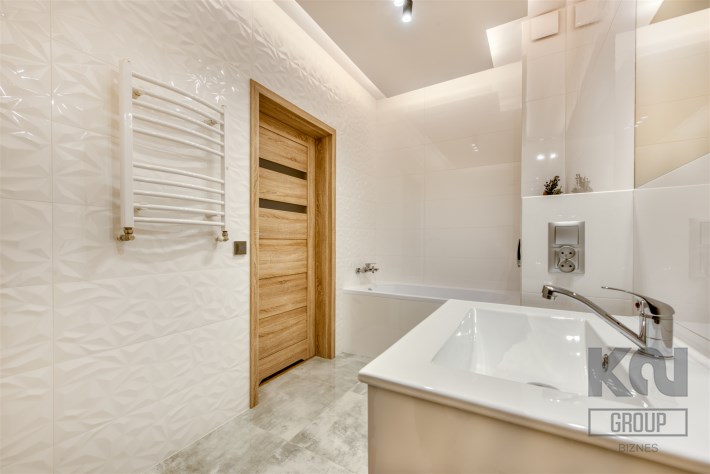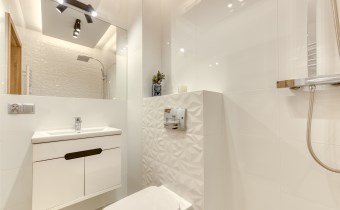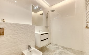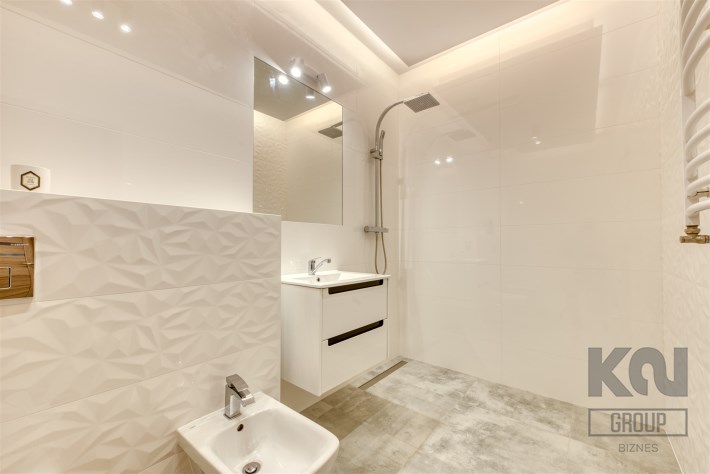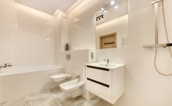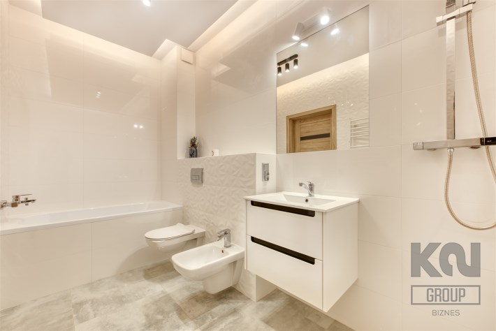 - łazienkę z WC i bidetem wyposażoną w wannę i kabinę prysznicową typu walk-in;