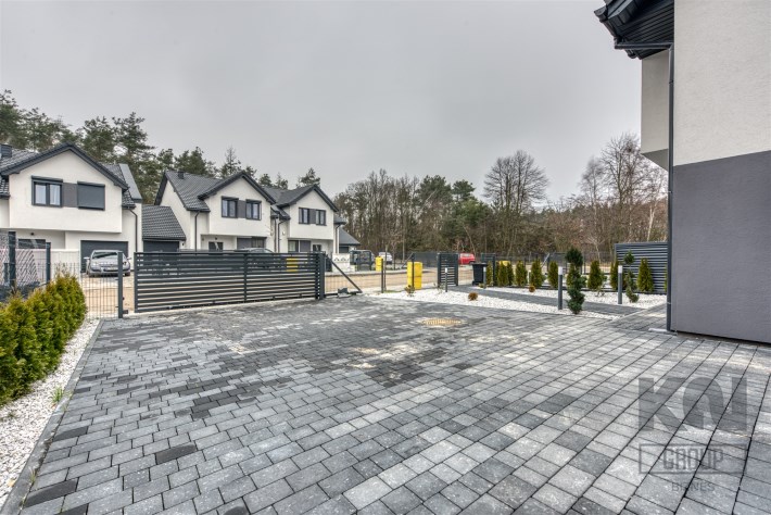 w sąsiedztwie lasu, na ekskluzywnym osiedlu domów "Osiedle Stróża" (800 m od granicy Łodzi, 2,7 km - 4 min. samochodem od centrum Andrespola, 5 km - 7 min. od autostrady A-1, 14,7 km od ul. Piotrkowskiej w Łodzi).