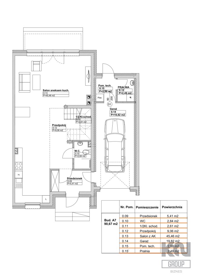 - dodatkowe pomieszczenie gospodarcze nad garażem o pow. 30 m2, z wysuwanymi schodami z sufitu (idealnie sprawdzi się jako magazyn opon, nart sprzętu sportowego i ogrodowego).