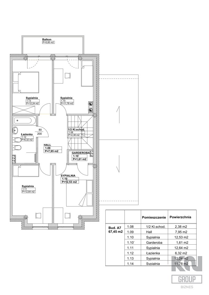 - dwie sypialnie z wyjściem na balkon i garderobą;