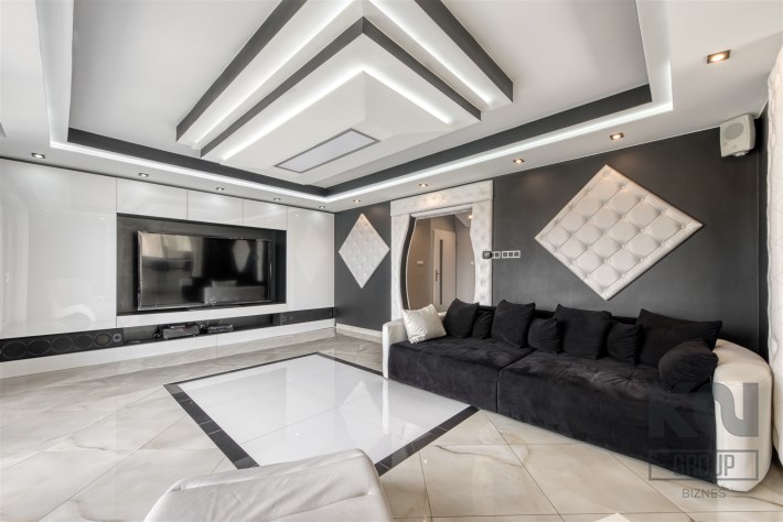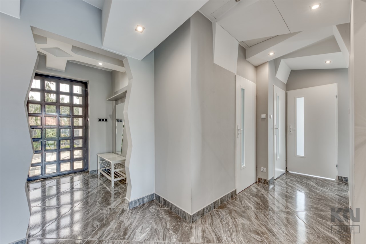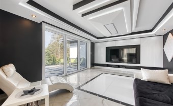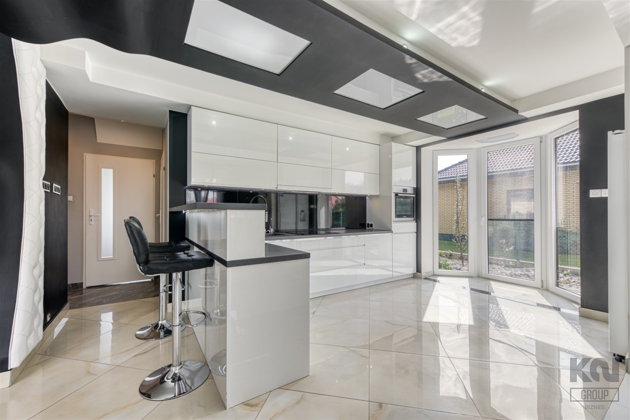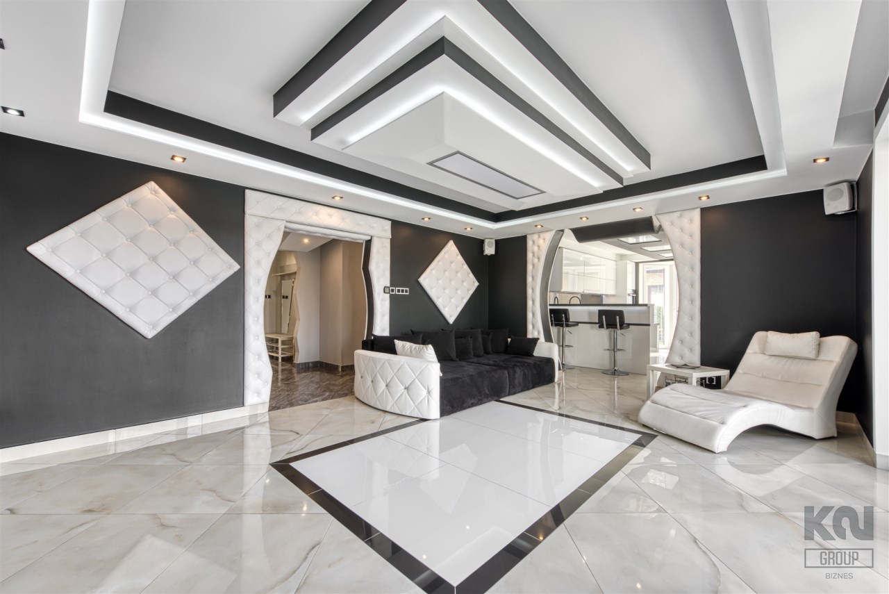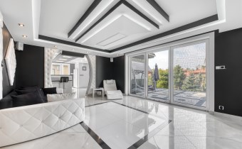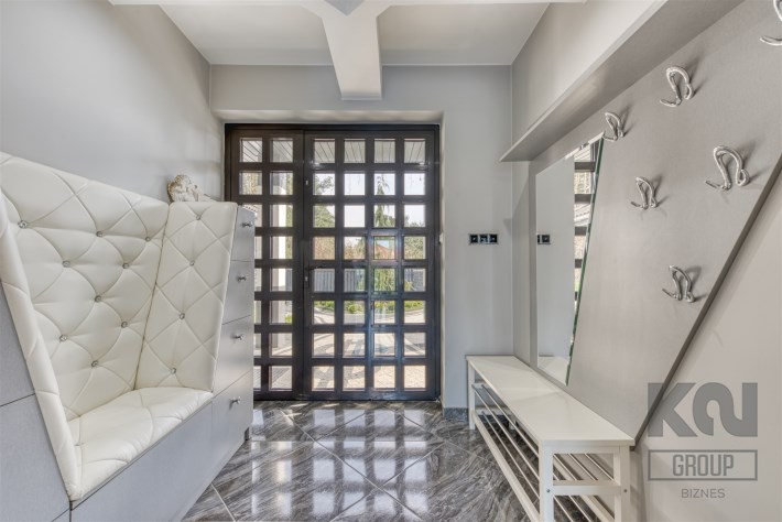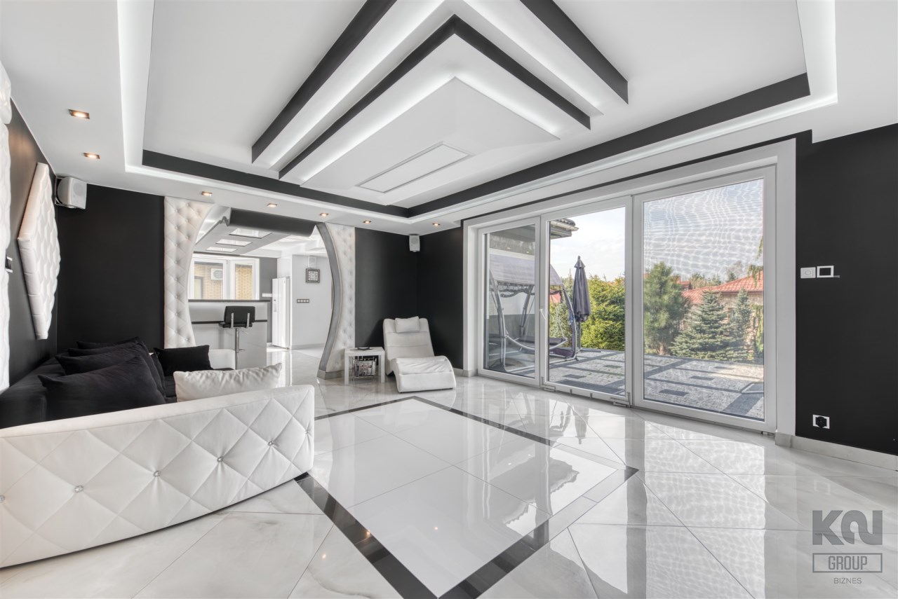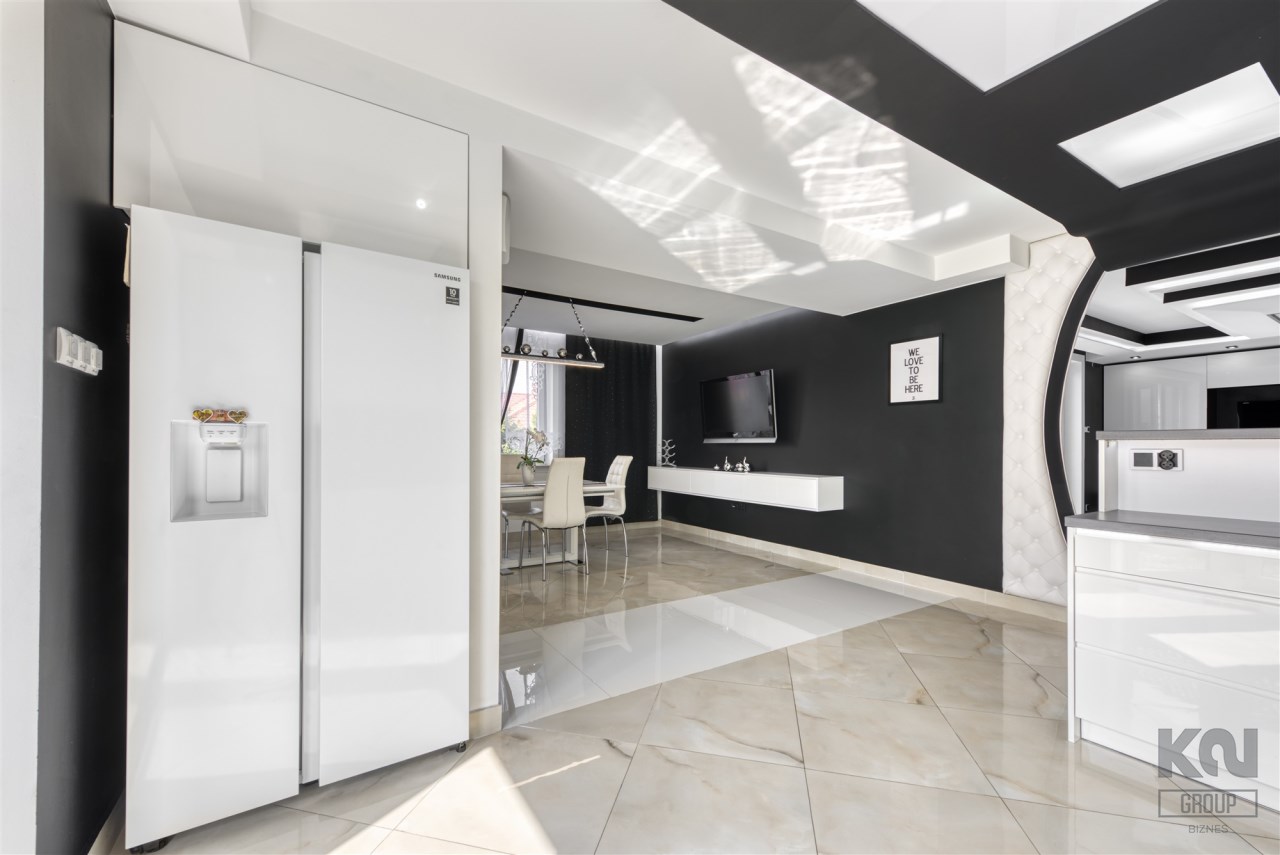 Dom jest kompletnie umeblowany i wyposażony, do wprowadzenia od zaraz. W skład wyposażenia wchodzą m.in. luksusowy komplet wypoczynkowy, telewizor LED 90", komplet kina domowego z dodatkowym rozprowadzeniem głośników w kuchni i na tarasie, w pełni zabudowana kuchnia wyposażona w najwyższej klasy sprzęty (płyta ceramiczna, piekarnik, zmywarka, lodówko-zamrażarka side-by-side, ekspres ciśnieniowy, toster), stół z krzesłami, komplet mebli ogrodowych etc.