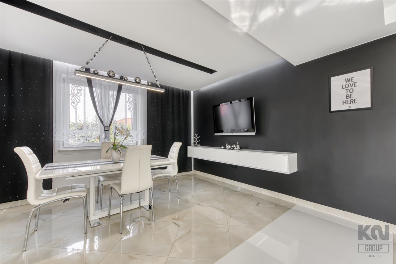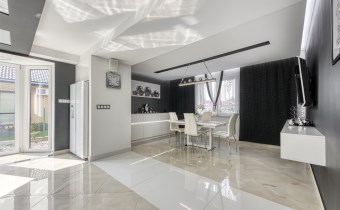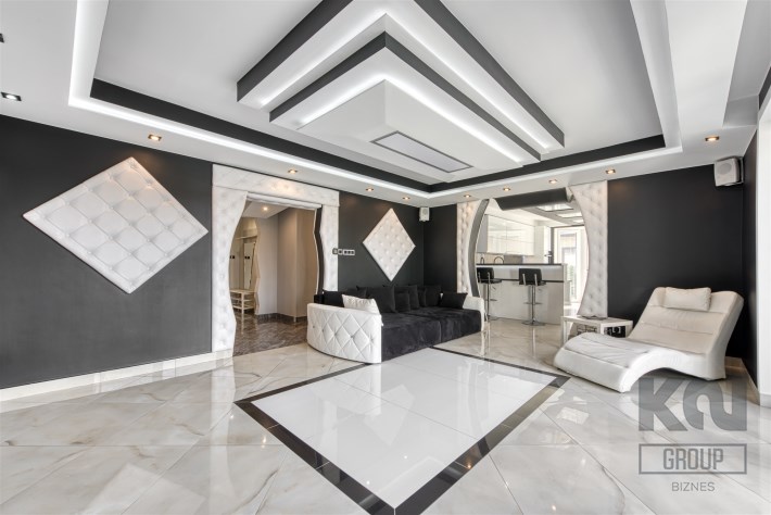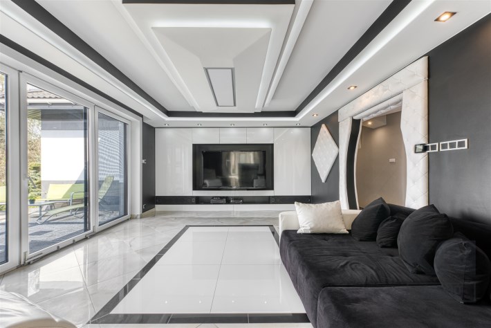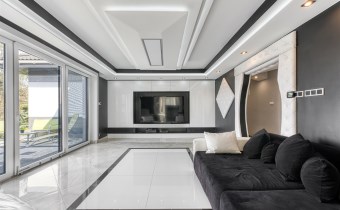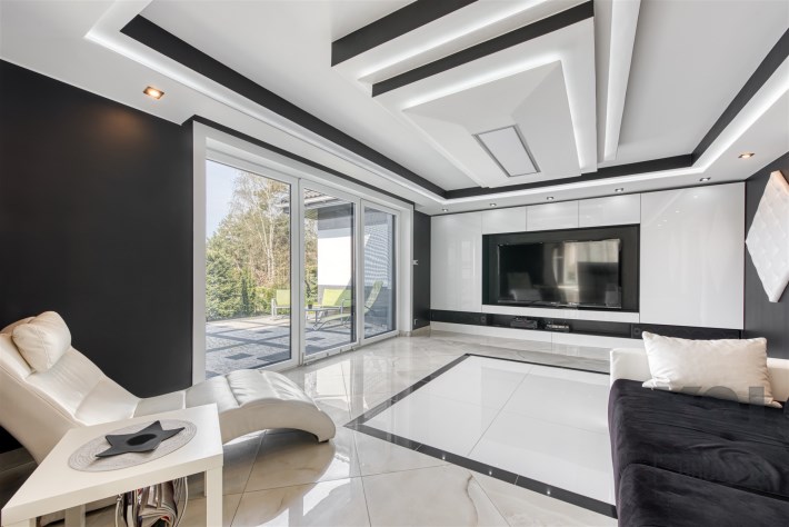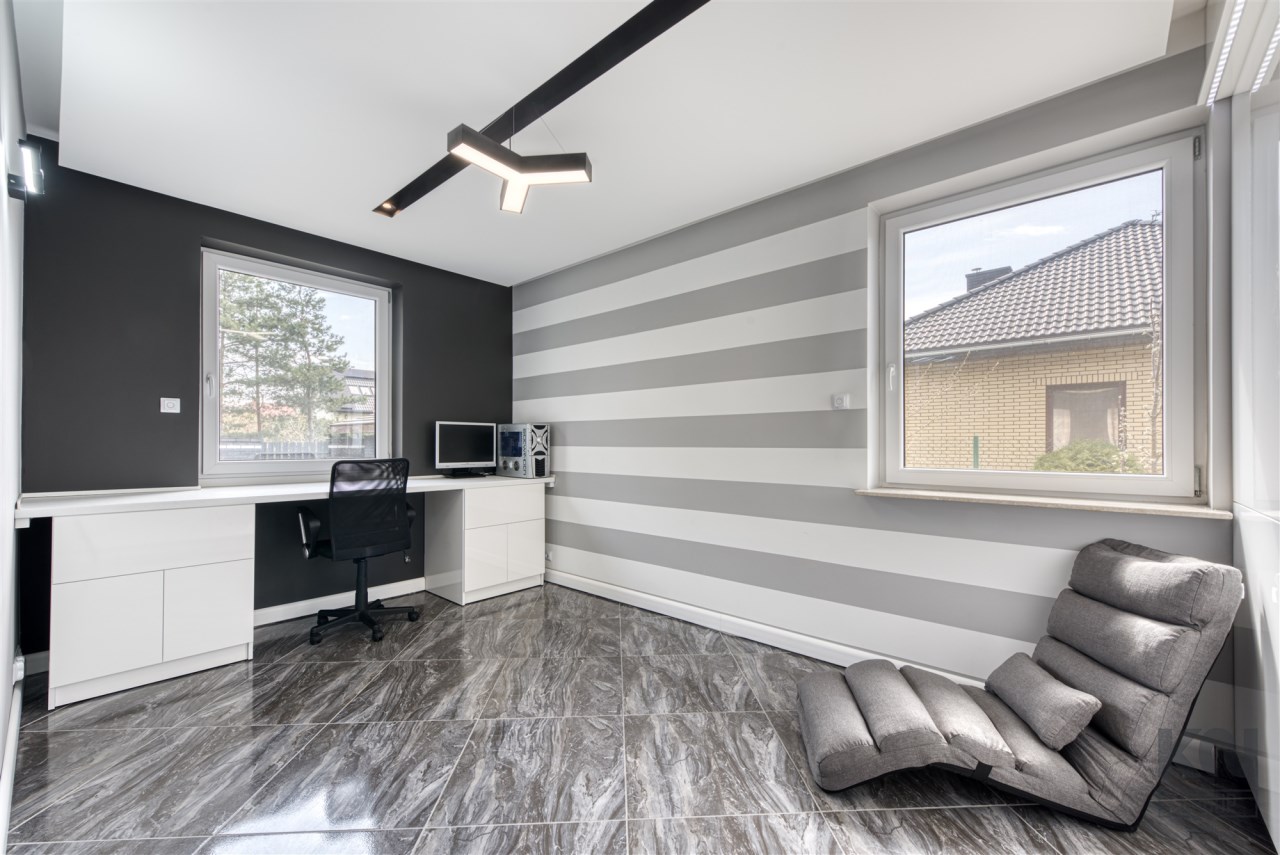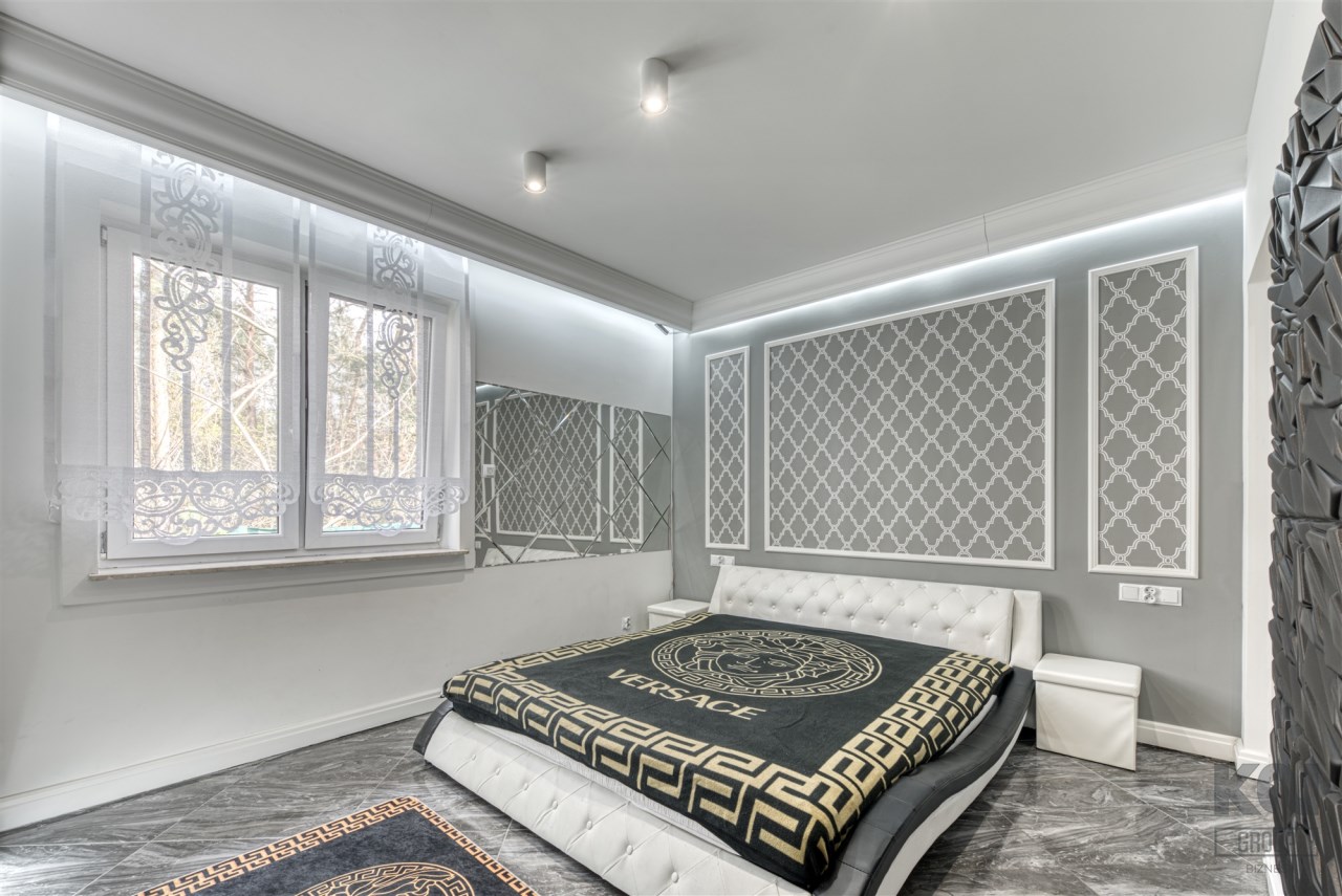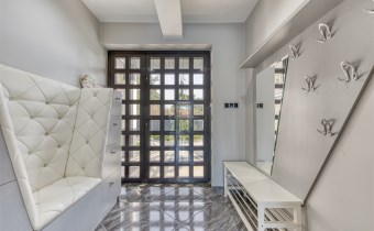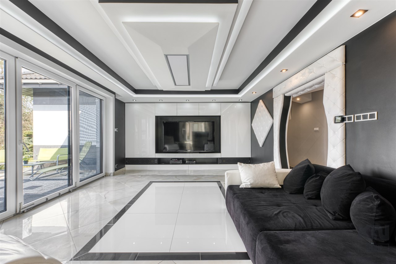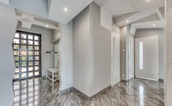 Dom jest kompletnie umeblowany i wyposażony, do wprowadzenia od zaraz. W skład wyposażenia wchodzą m.in. luksusowy komplet wypoczynkowy, telewizor LED 90", komplet kina domowego z dodatkowym rozprowadzeniem głośników w kuchni i na tarasie, w pełni zabudowana kuchnia wyposażona w najwyższej klasy sprzęty (płyta ceramiczna, piekarnik, zmywarka, lodówko-zamrażarka side-by-side, ekspres ciśnieniowy, toster), stół z krzesłami, komplet mebli ogrodowych etc.