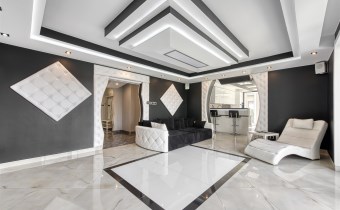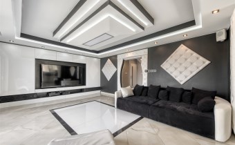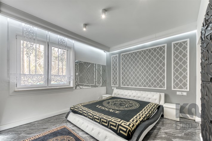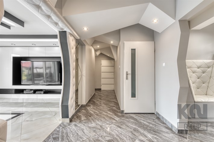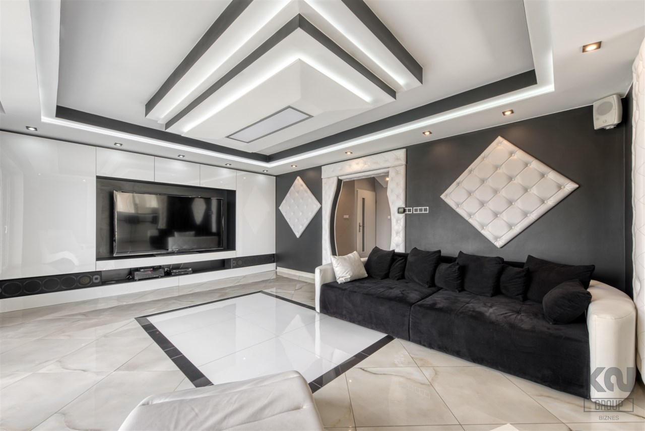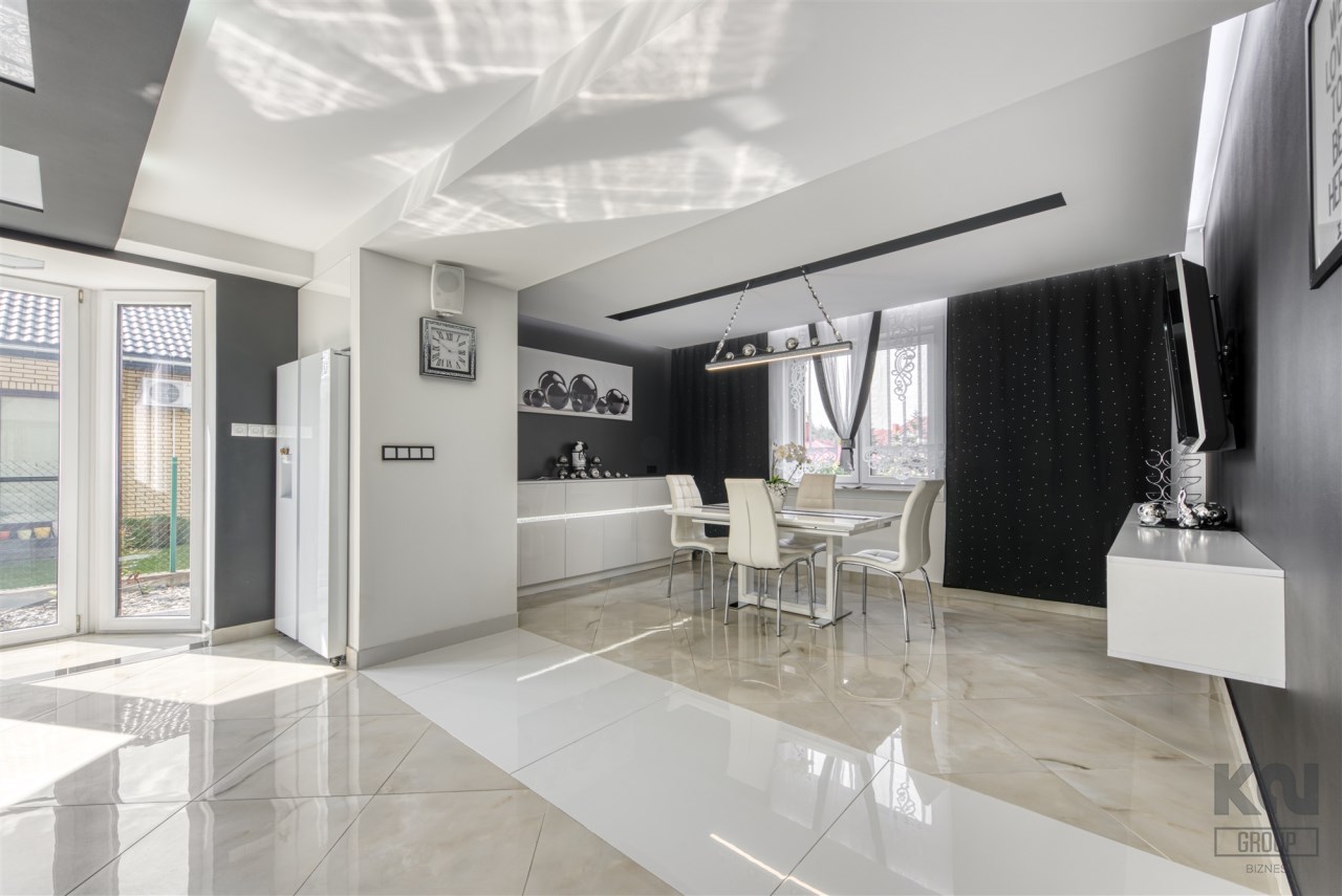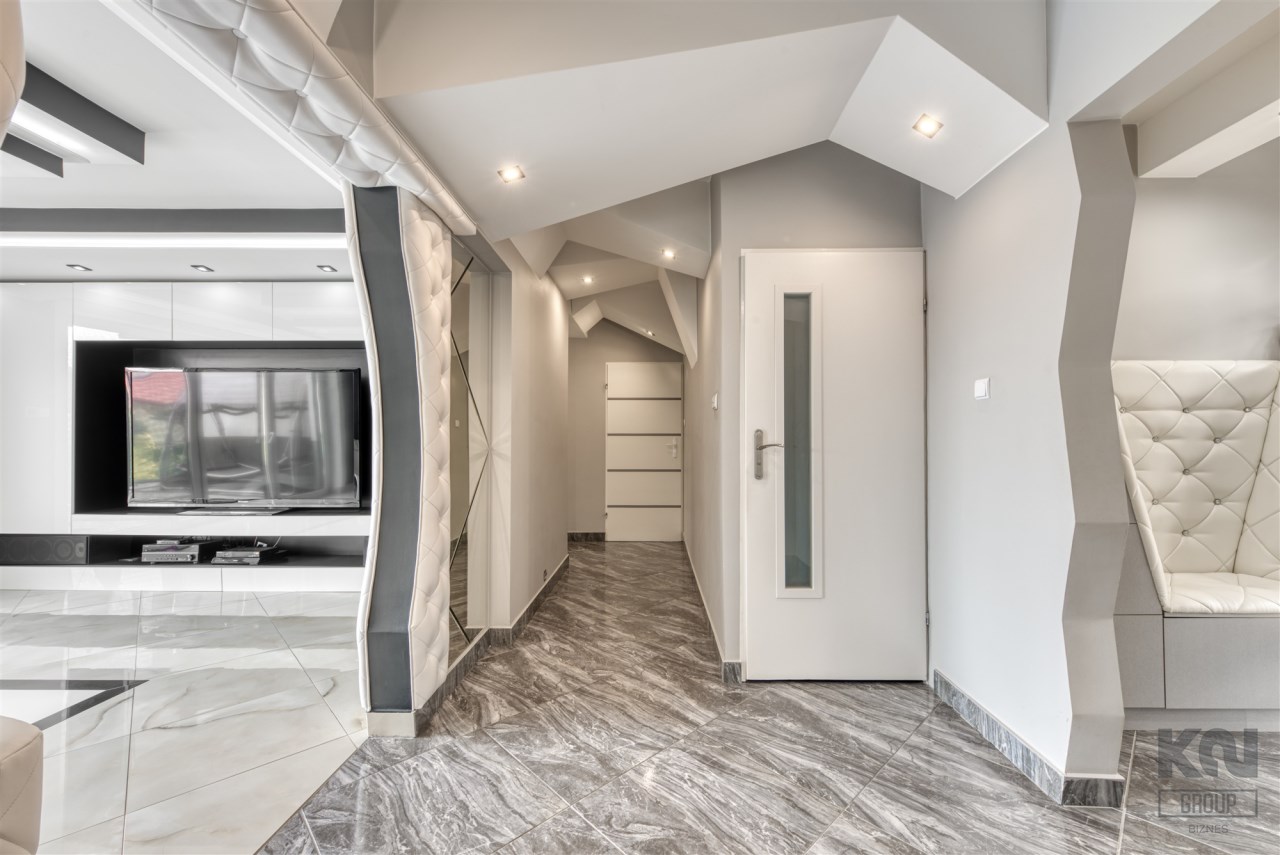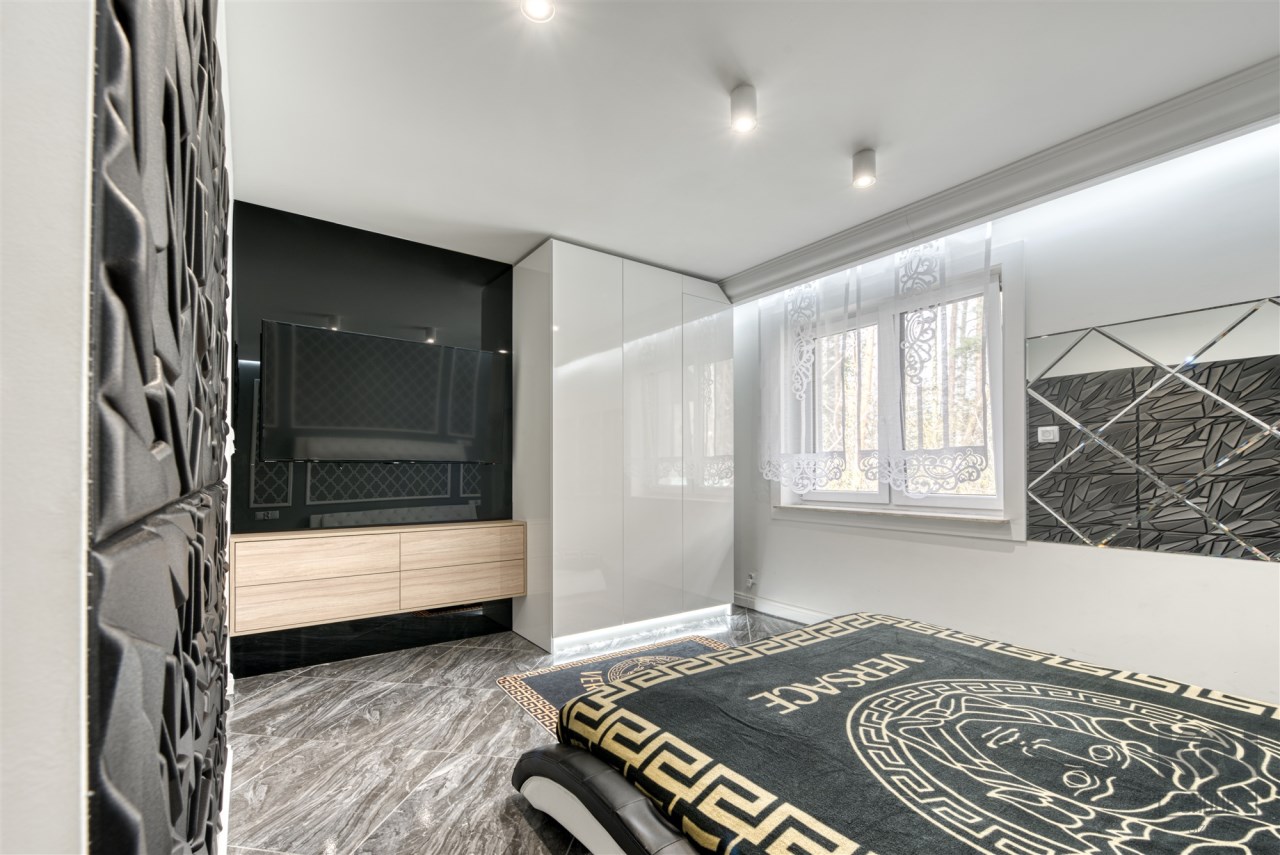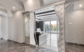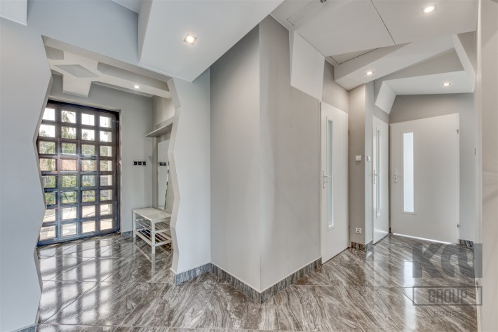 Dom jest kompletnie umeblowany i wyposażony, do wprowadzenia od zaraz. W skład wyposażenia wchodzą m.in. luksusowy komplet wypoczynkowy, telewizor LED 90", komplet kina domowego z dodatkowym rozprowadzeniem głośników w kuchni i na tarasie, w pełni zabudowana kuchnia wyposażona w najwyższej klasy sprzęty (płyta ceramiczna, piekarnik, zmywarka, lodówko-zamrażarka side-by-side, ekspres ciśnieniowy, toster), stół z krzesłami, komplet mebli ogrodowych etc.