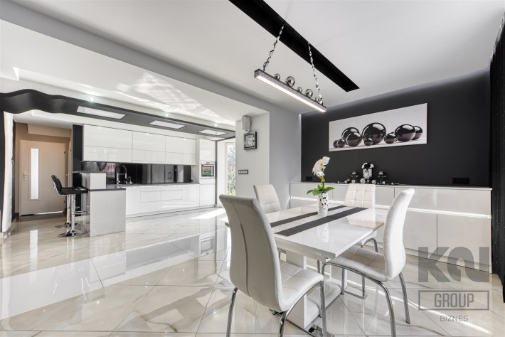 - kompletnie wyposażony aneks kuchenny połączony z nowoczesną jadalnią;