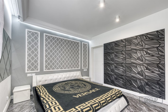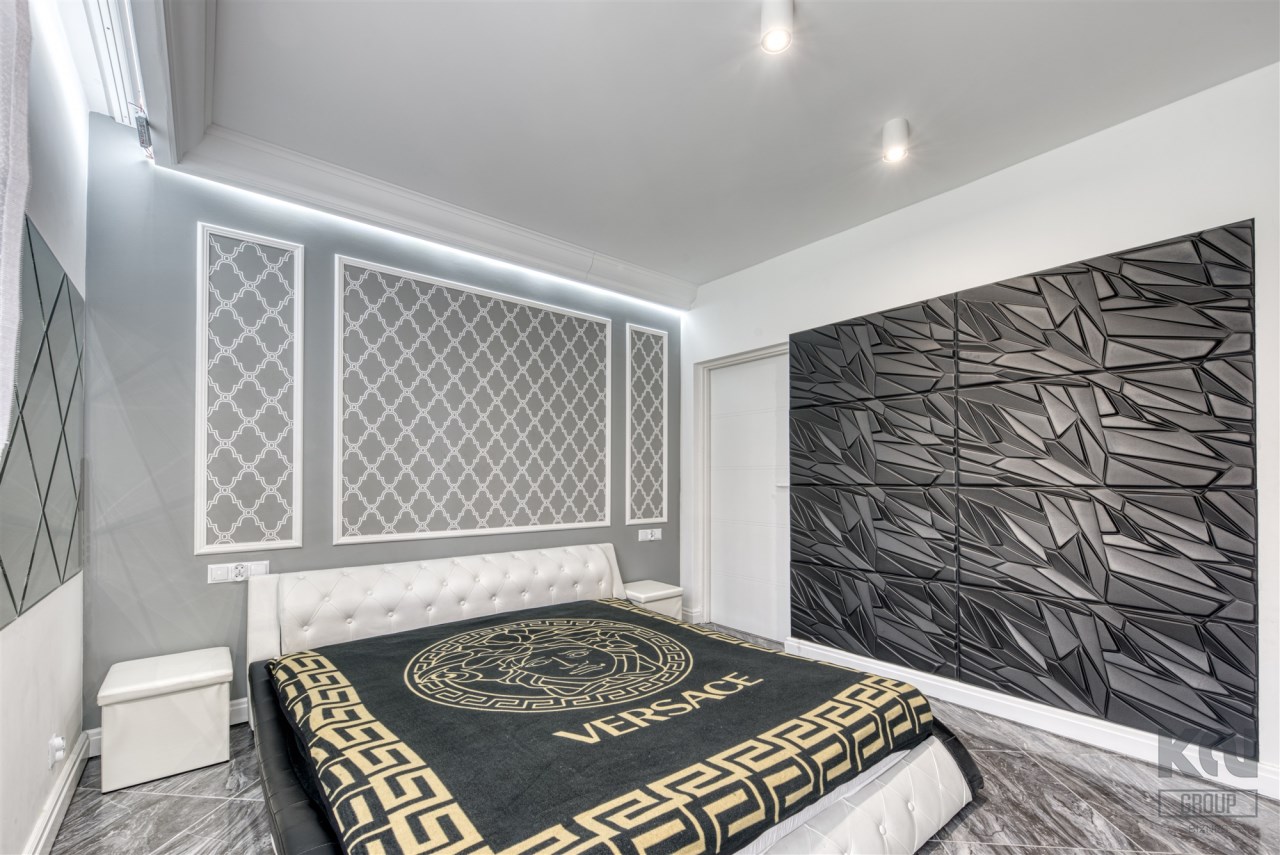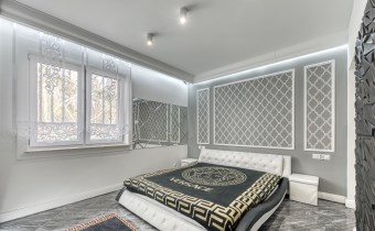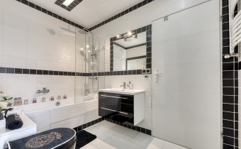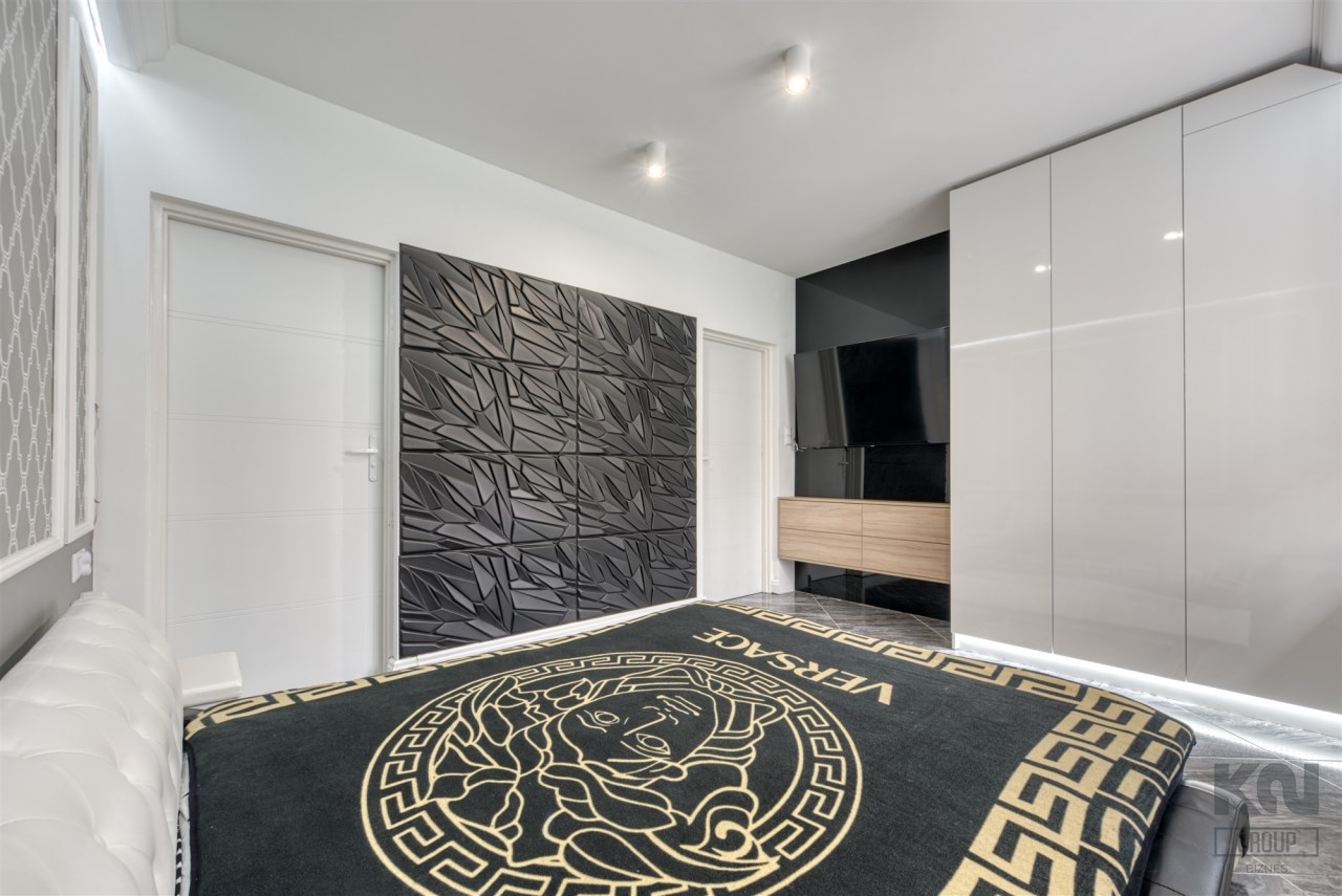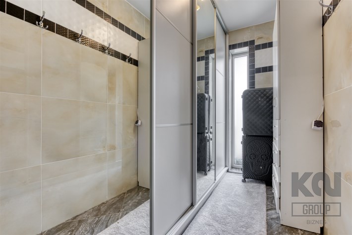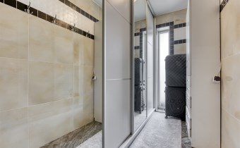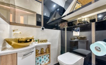 - główną sypialnię z łazienką en-suite wyposażoną w wannę z funkcją prysznica, umywalkę, bidet, WC i saunę;
