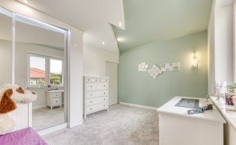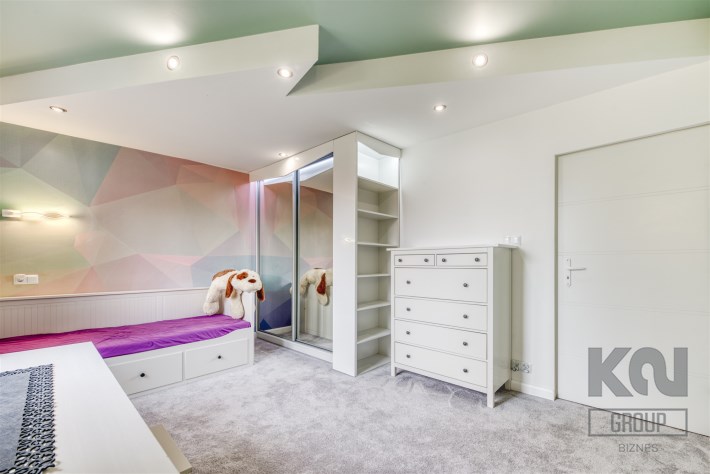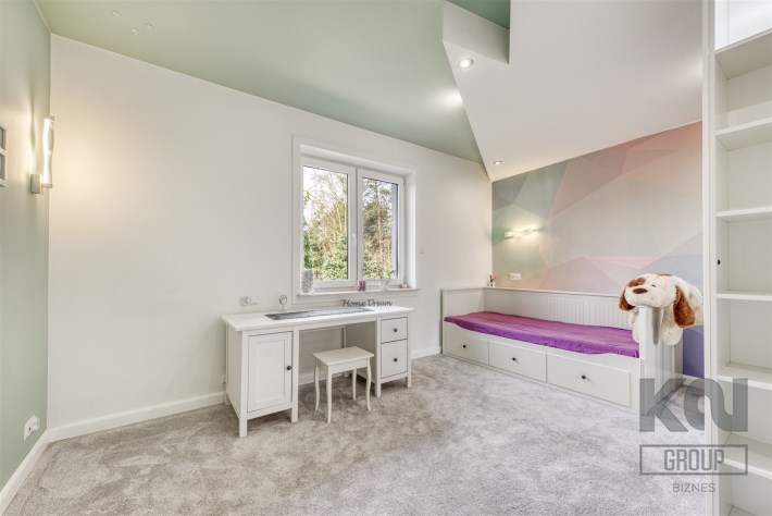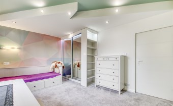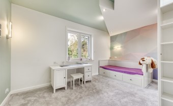 - sypialnię dziecięcą wyposażoną w zabudowaną szafę, łóżko i biurko;