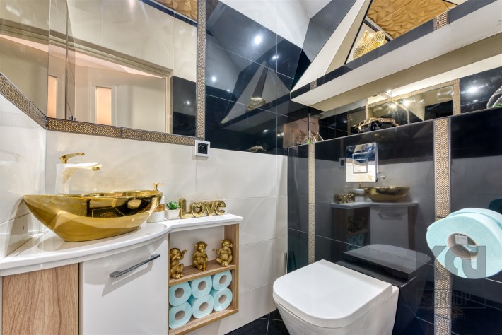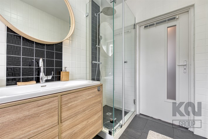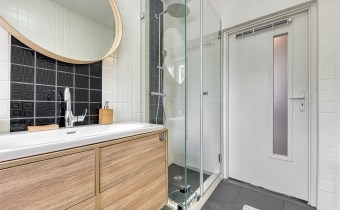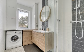 - łazienkę wyposażoną w kabinę prysznicową i umywalkę;
