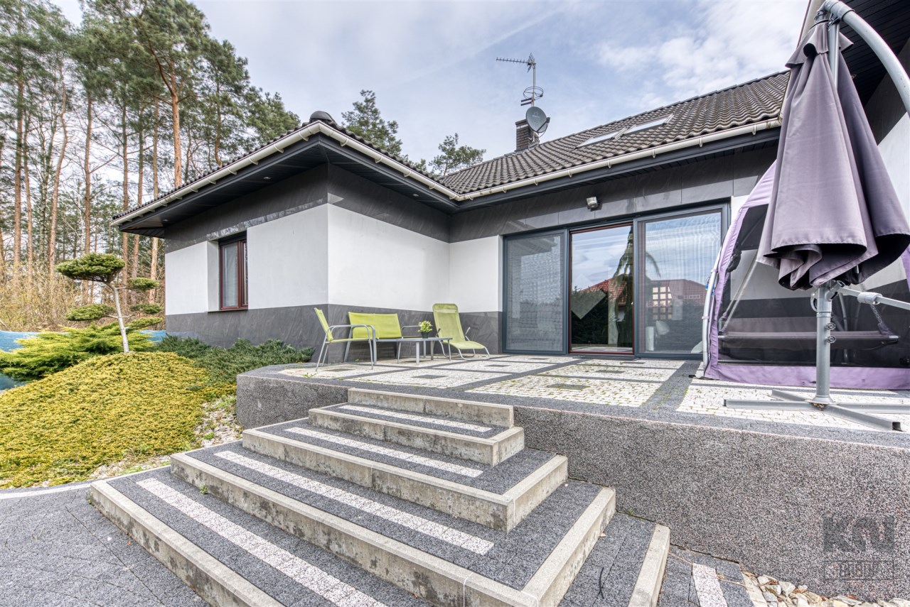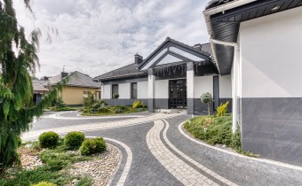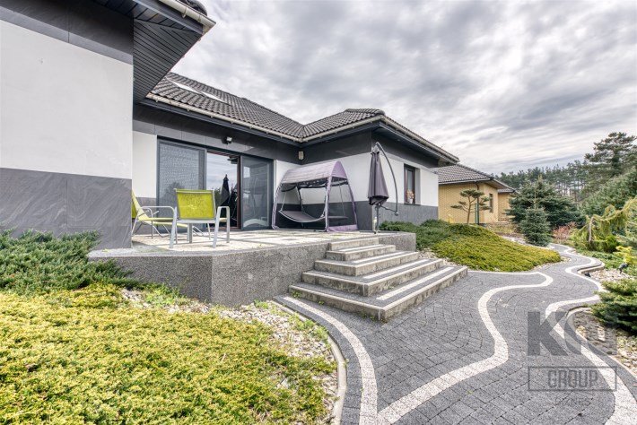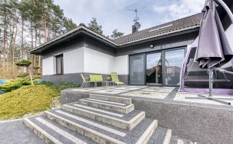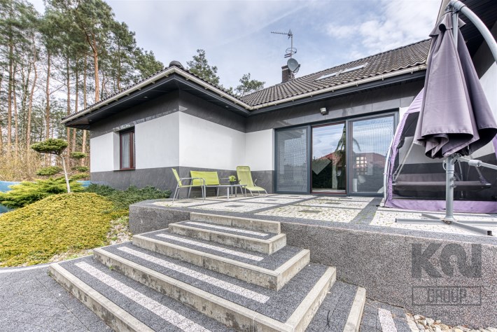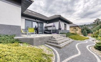 Działka całkowicie zagospodarowana z licznymi nasadzeniami, systemem automatycznego nawadniania i podświetleniem w energooszczędnej technologii LED. Podjazd i alejki wykonane z najwyższej jakości kostki. Usytuowanie działki na końcu ślepej uliczki oraz na granicy z lasem gwarantuje prywatność, spokój i ciszę.