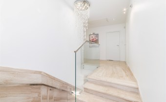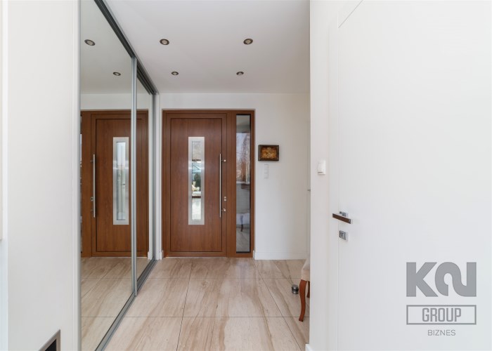 - Hol wejściowy nadający wnętrzom efektowny styl już od samego wejścia, zabudowany szafą na odzież i buty, posiadającą praktyczne schowki.