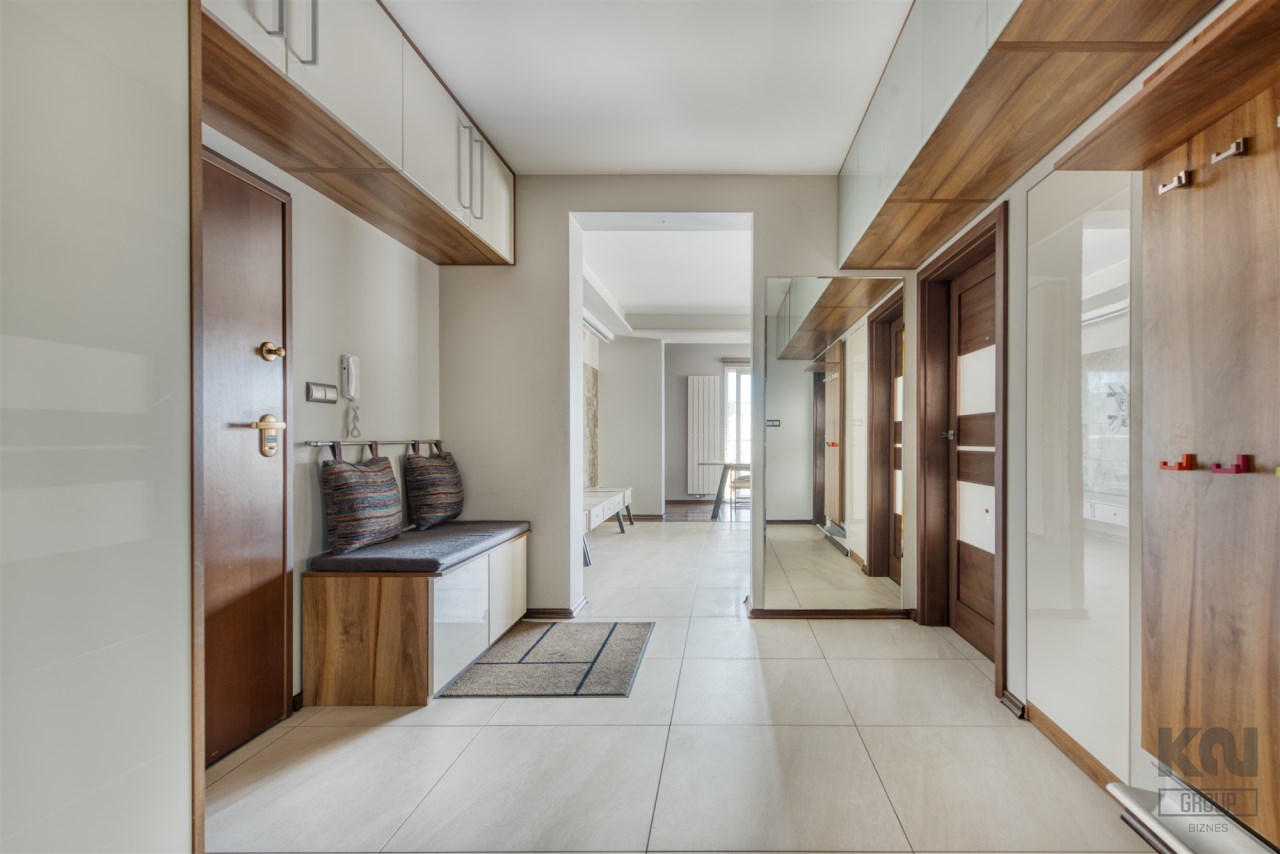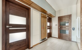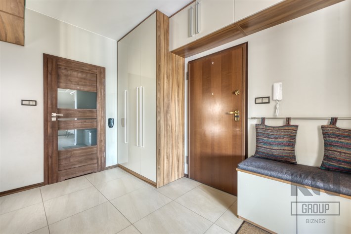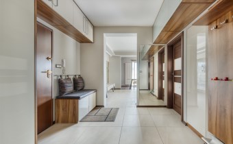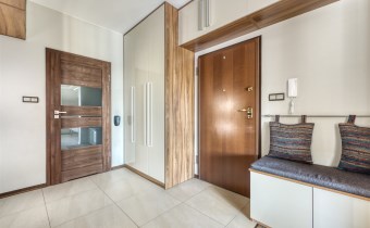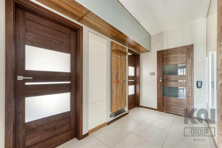 - Przedpokój – przestronny, z dobrze zaprojektowaną strefą wejściową i zabudową na wymiar, zapewniającą dużą ilość miejsca do przechowywania.