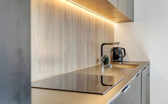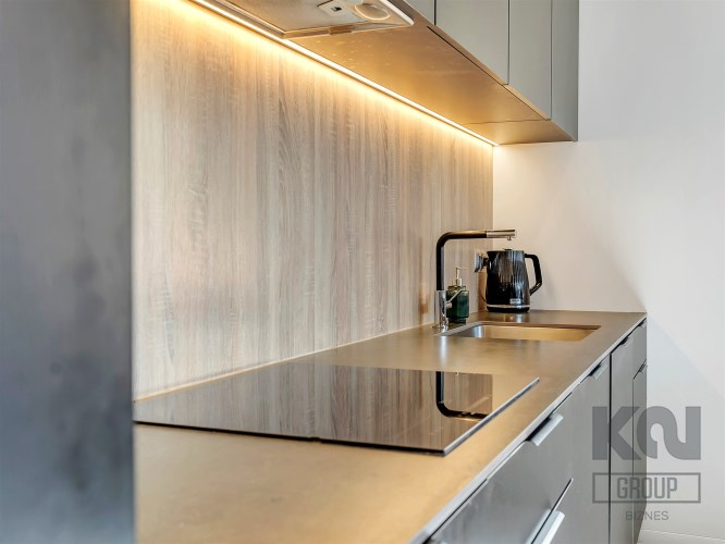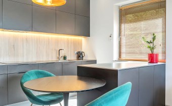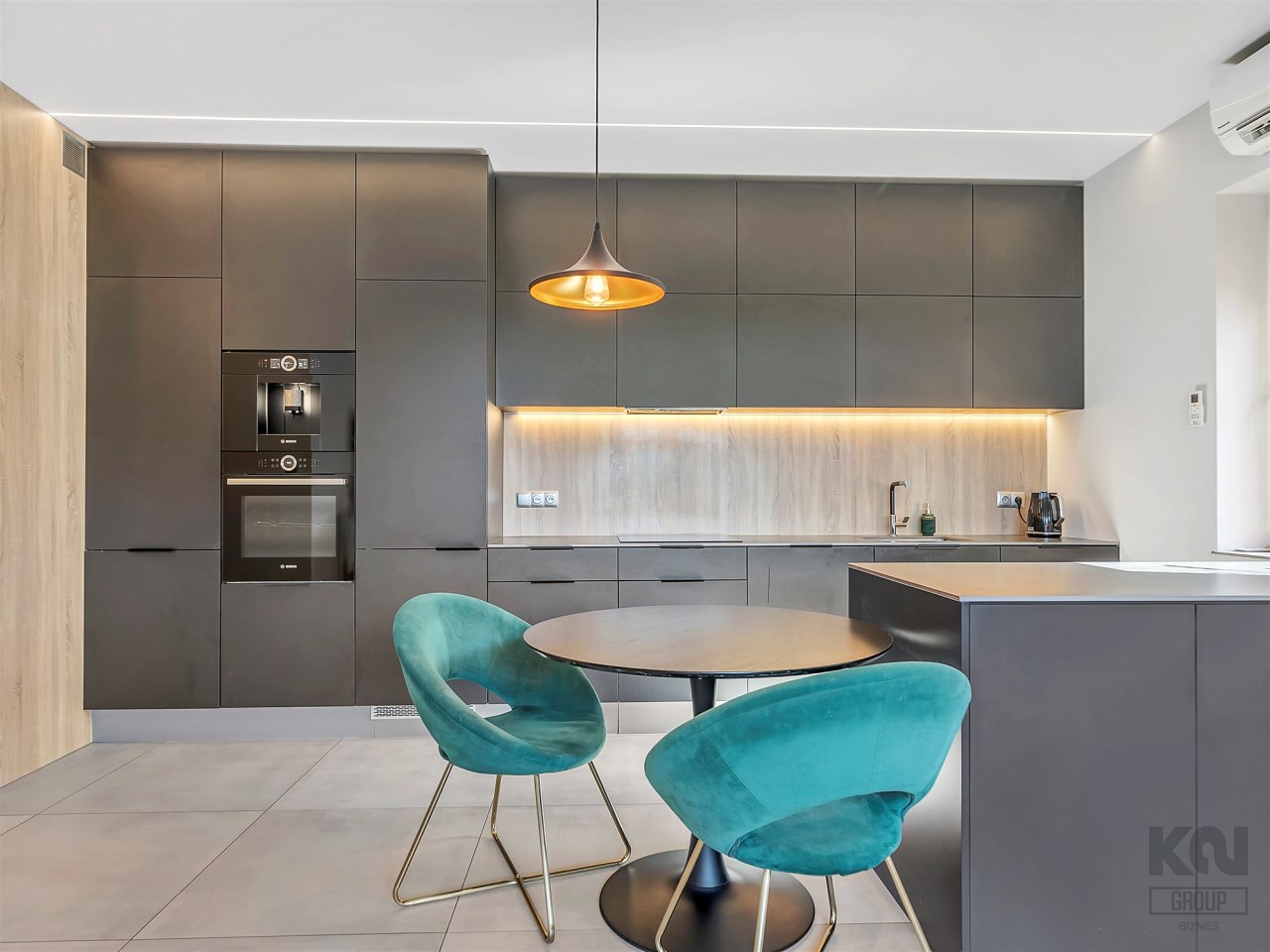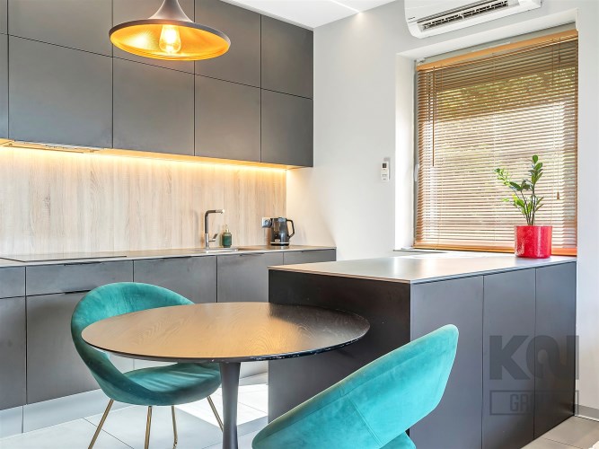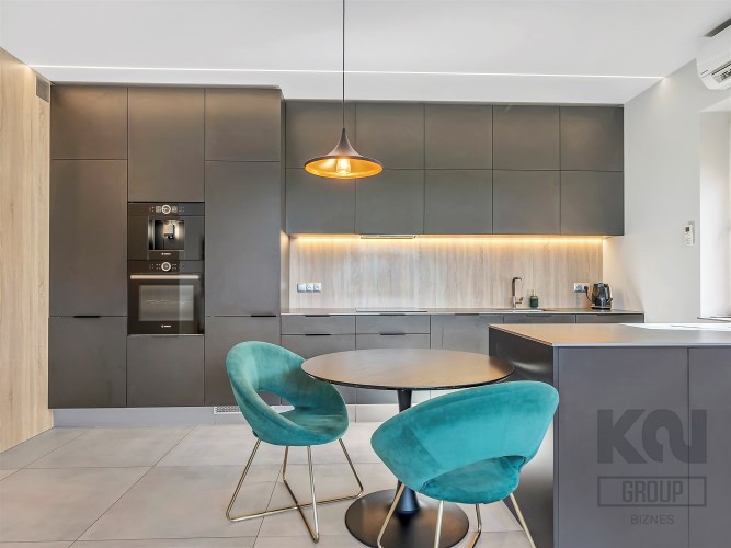 - Kuchnia: blat ze spieku kwarcowego (12 mm), ekspres do kawy i piekarnik Bosch (seria 6) w zabudowie;
