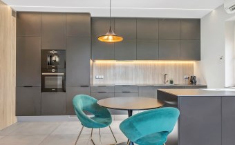 Projekt mieszkania został zrealizowany przez doświadczoną pracownię architektoniczną, która postawiła na funkcjonalność, ponadczasową stylistykę wnętrz oraz najwyższy standard wykończenia.
