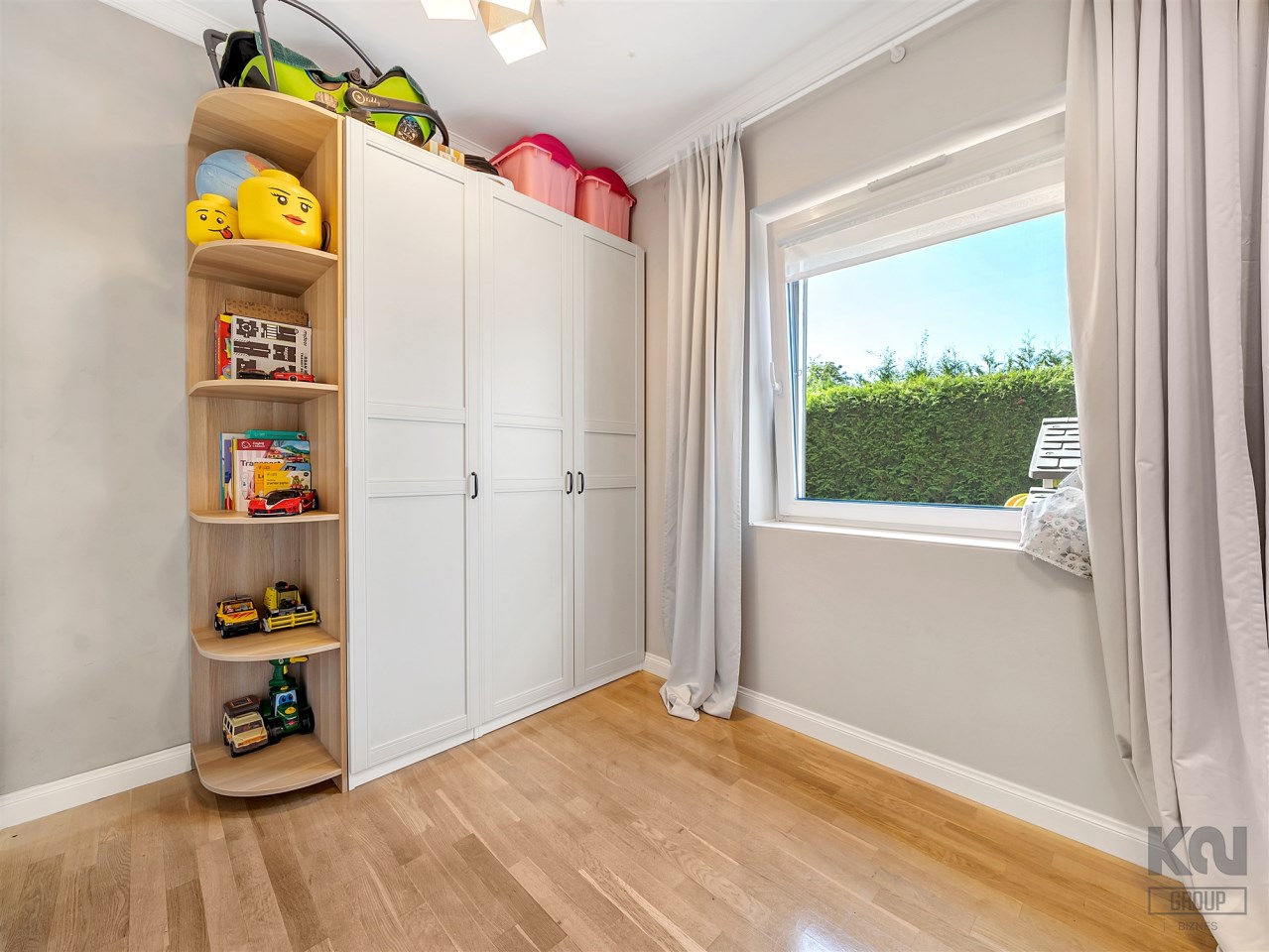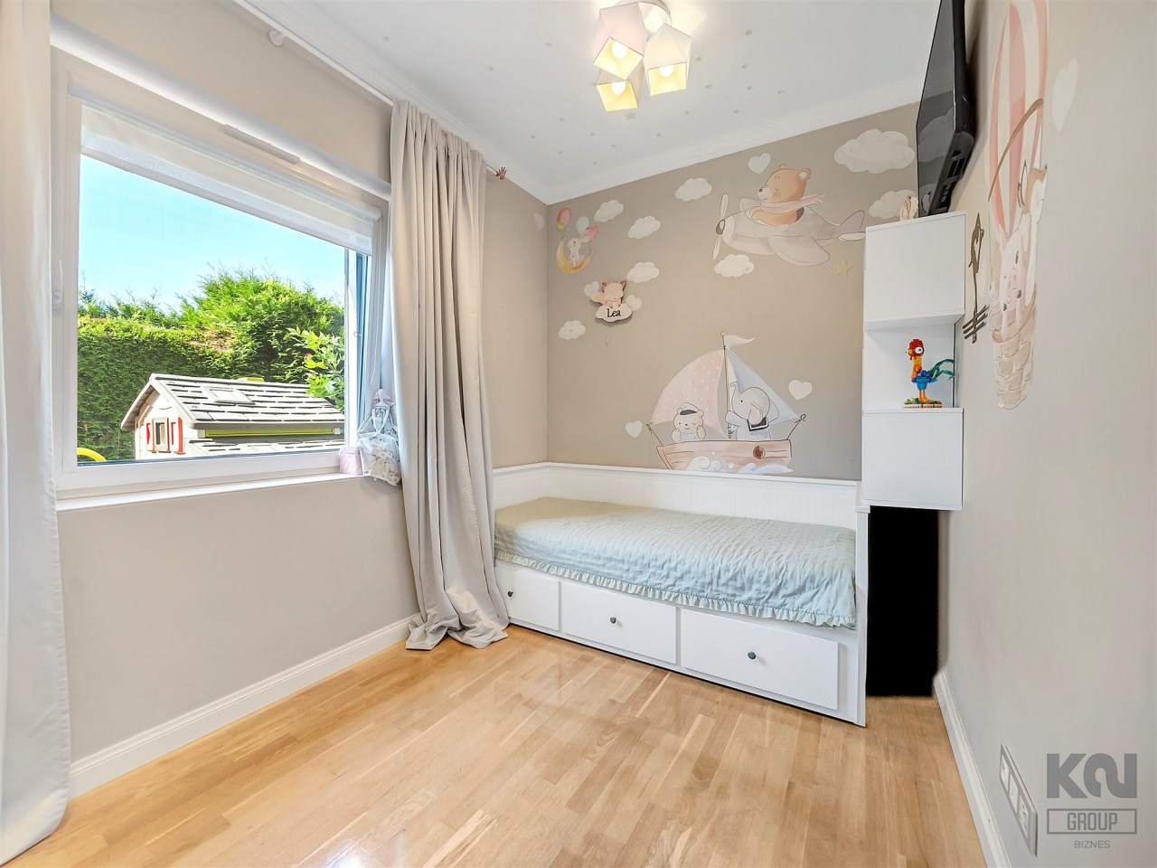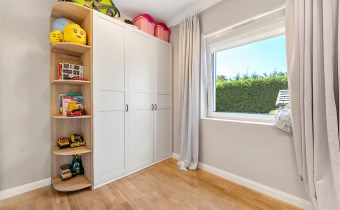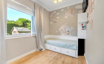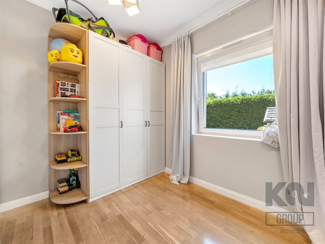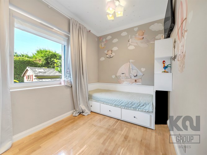 Przytulny i jasny, z dużym oknem. Obecnie urządzony jako dziecięcy, lecz łatwy do zaadaptowania na gabinet do pracy lub sypialnię gościnną.