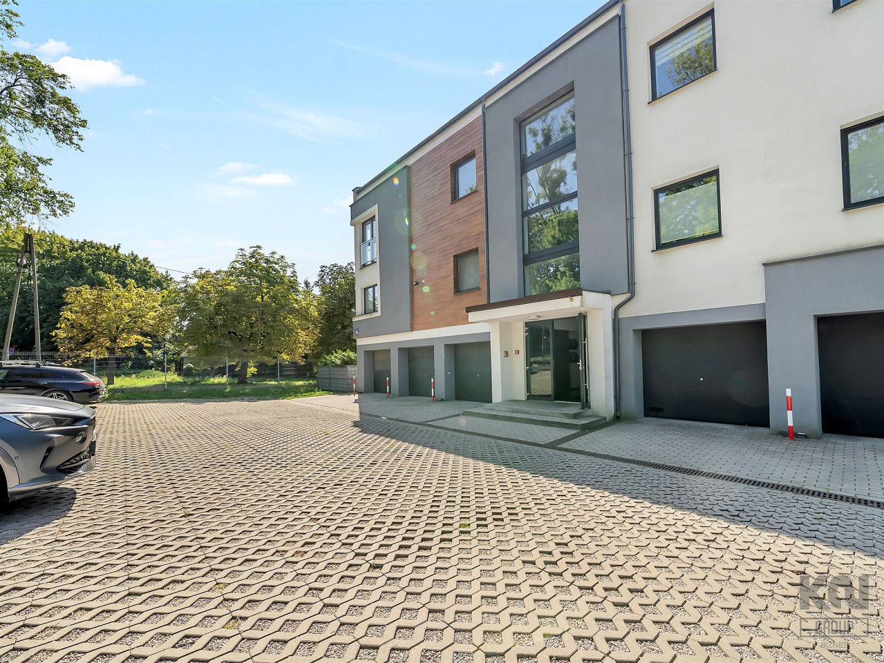 Na terenie posesji znajdują się garaże w bryle budynku oraz miejsca postojowe na ogrodzonym terenie, wyłożonym kostką ekologiczną.