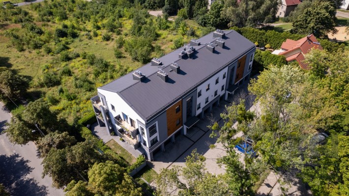 Kameralny budynek o nowoczesnej architekturze. Jasne elewacje z drewnopodobnymi akcentami i dużymi przeszkleniami nadają mu lekkości i wyjątkowego charakteru.