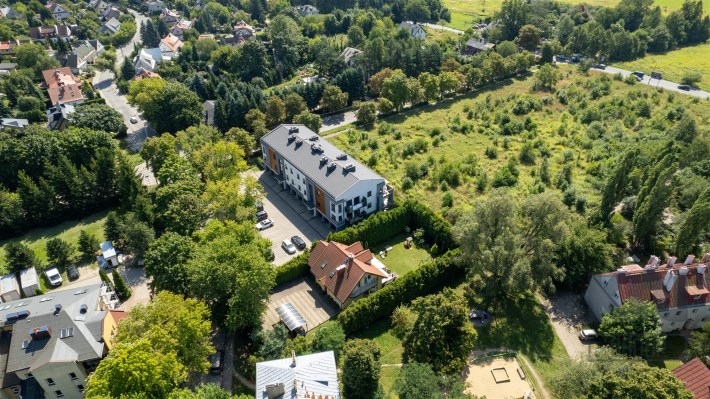 o ruchu lokalnym (strefa 30 km/h), obsadzonej szpalerem lip i kasztanowców. Położenie budynku na terenie ogrodzonym gwarantuje właścicielom mieszkań poczucie spokoju i bezpieczeństwa.