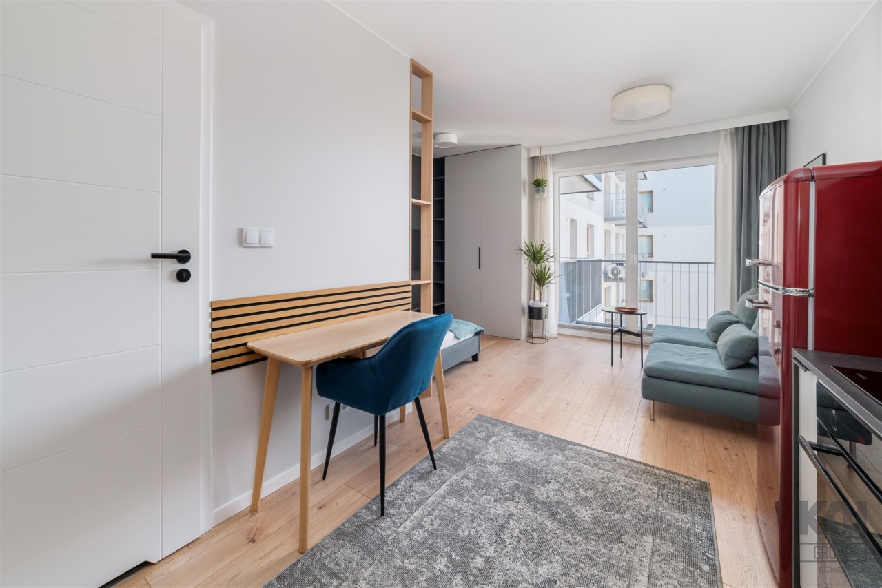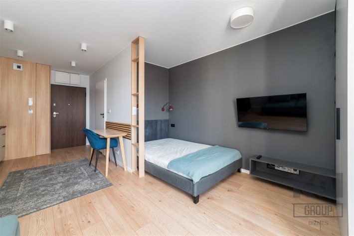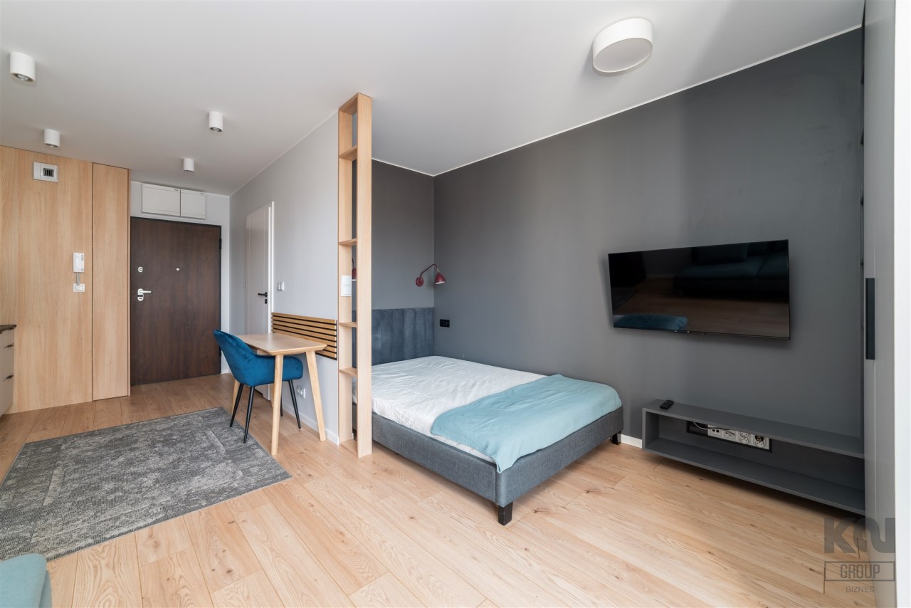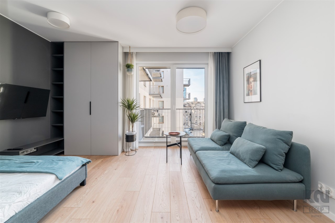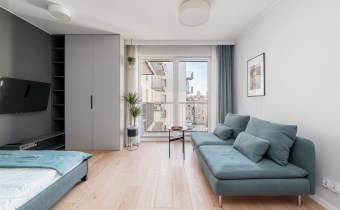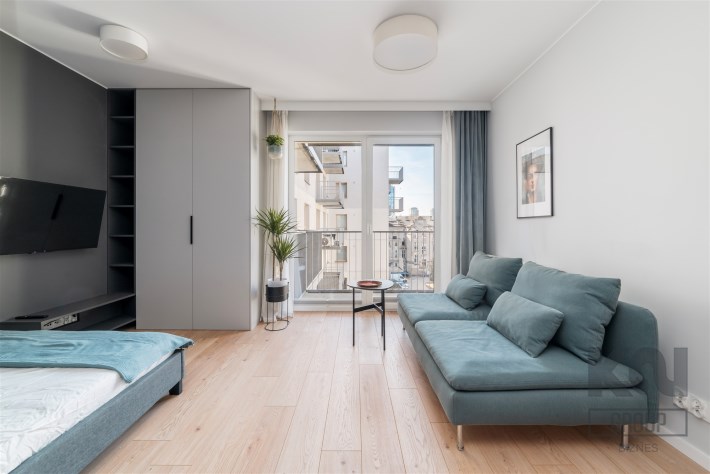 Przedstawiamy nowoczesne mieszkanie typu studio o powierzchni 25,65 m2 położone na piątym piętrze w apartamentowcu Diasfera przy ul. Targowej 53B w Łodzi.