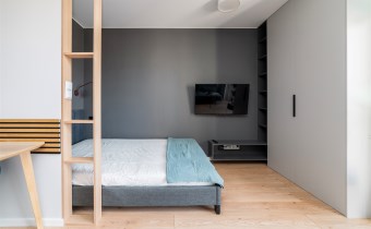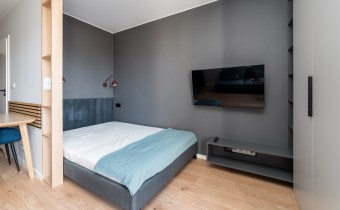 - sypialnię z dwuosobowym łóżkiem oraz pojemną szafą;