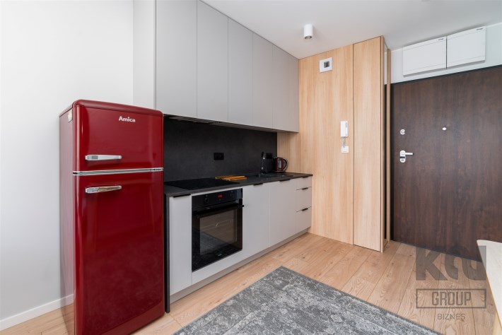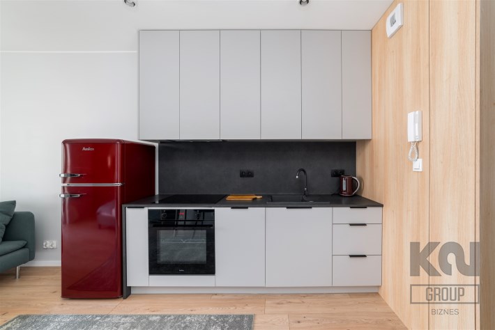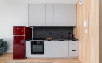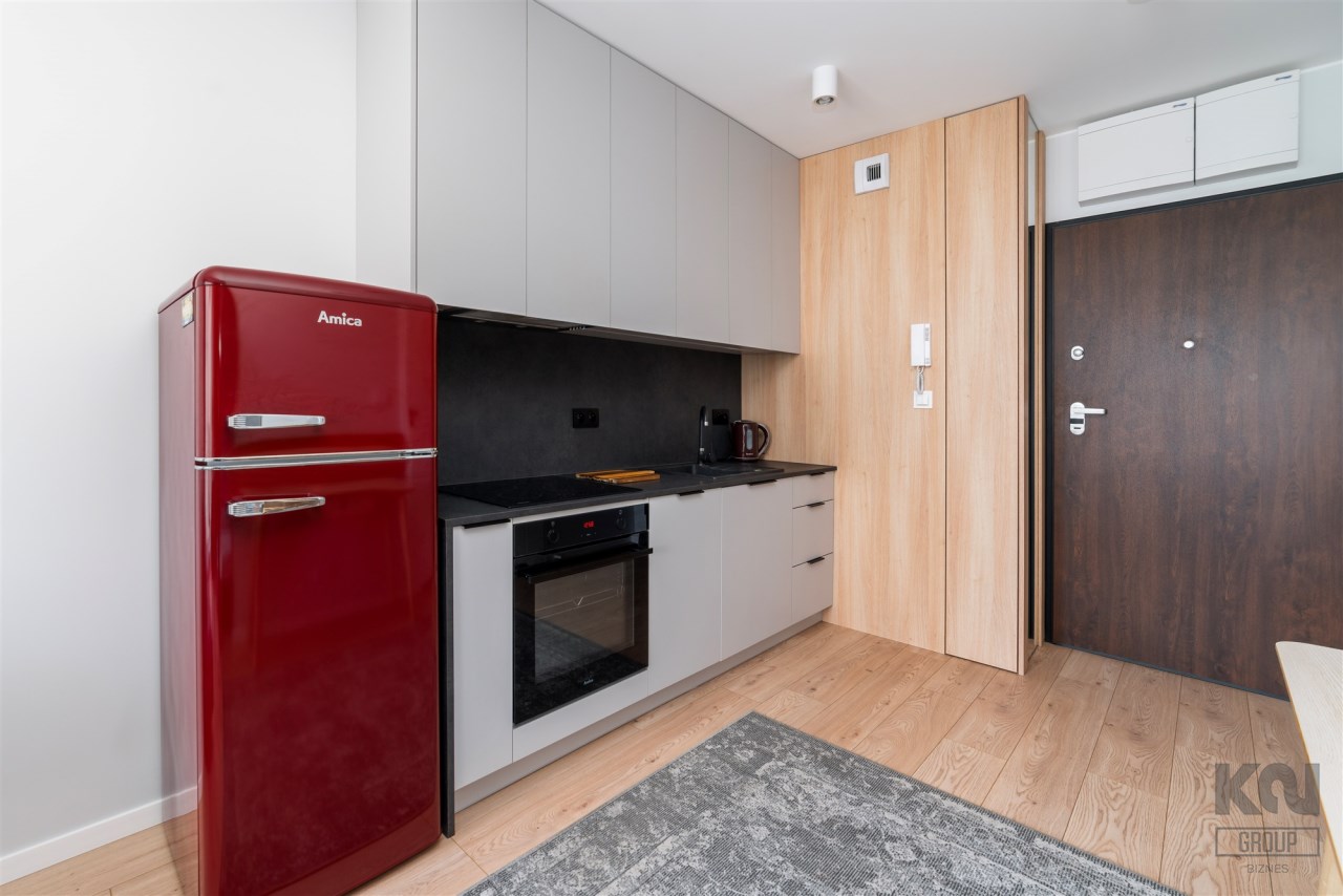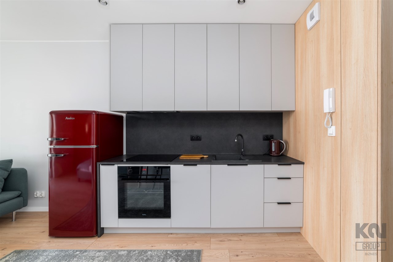 - aneks kuchenny wyposażony w płytę indukcyjną, okap, piekarnik, lodówko-zamrażarkę i zmywarkę;