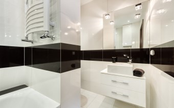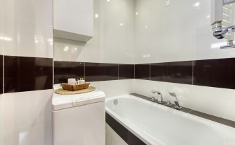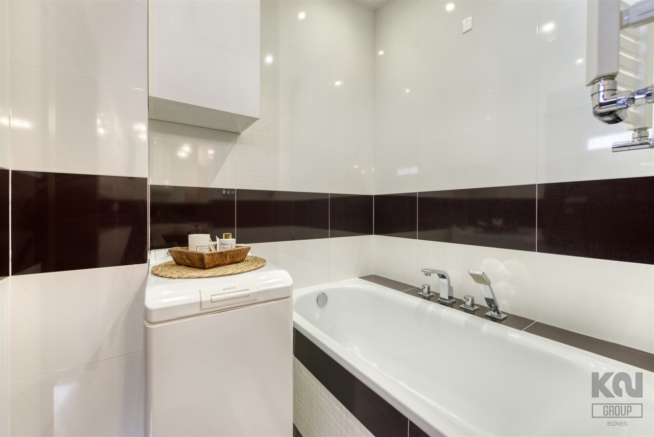 - nowoczesną łazienkę wyposażoną w wannę oraz pralkę;