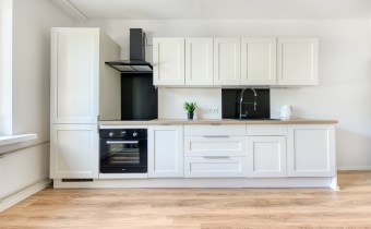 Wyposażenie kuchni zabudowa kuchenna, pralka, zlewozmywak z baterią, zmywarka, płyta indukcyjna, piekarnik elektryczny, okap, lodówko/zamrażarka