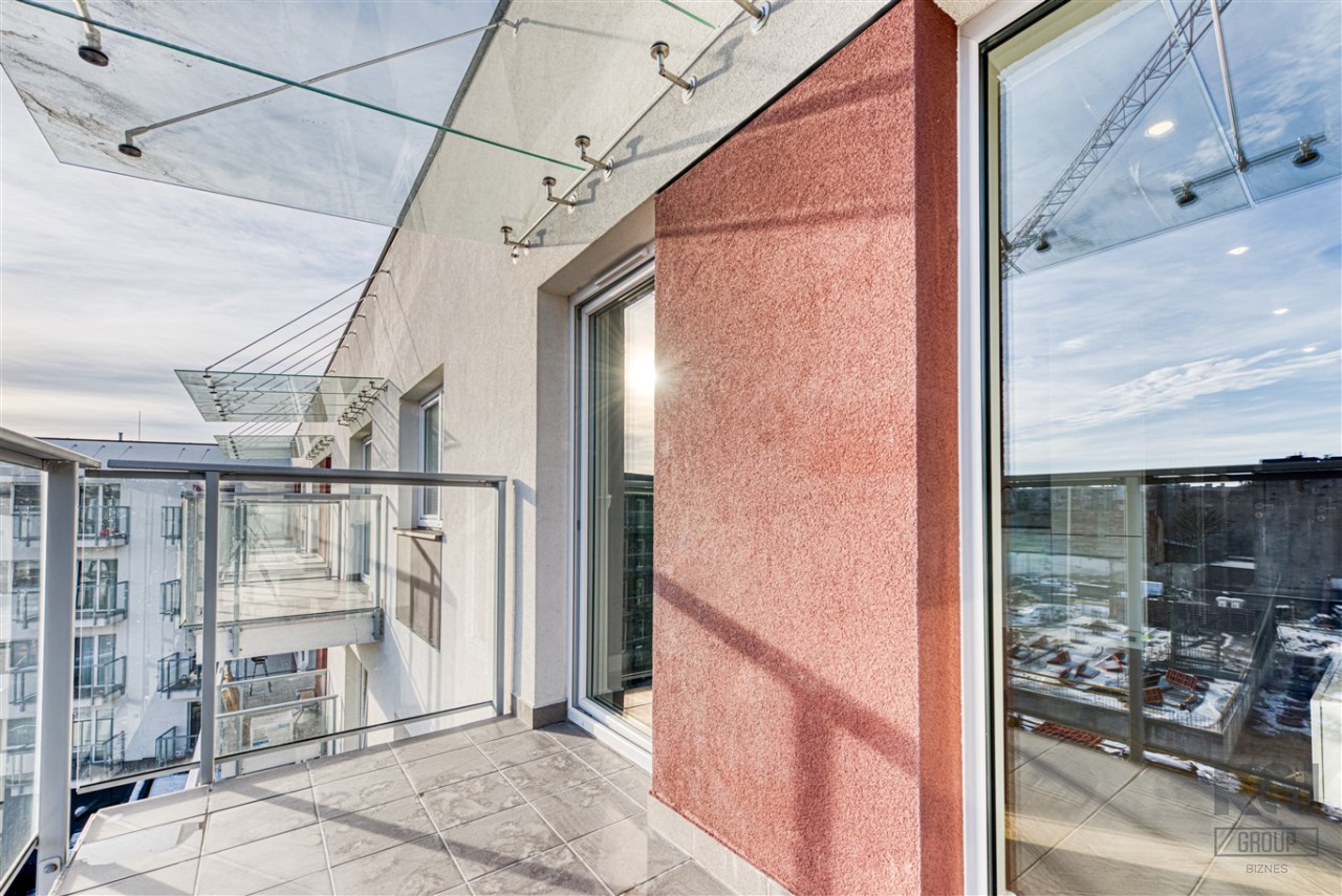 - słoneczny salon z wyjściem na balkon;