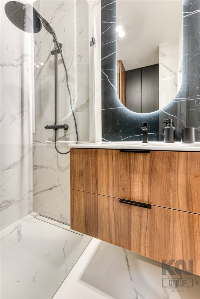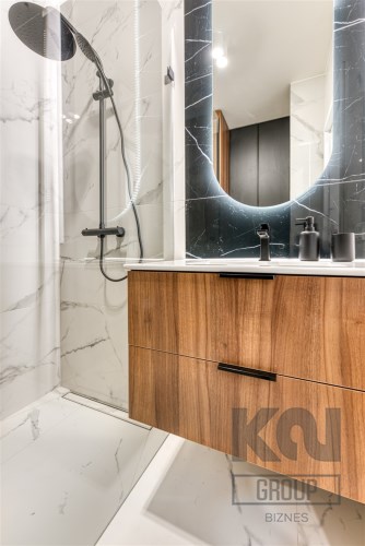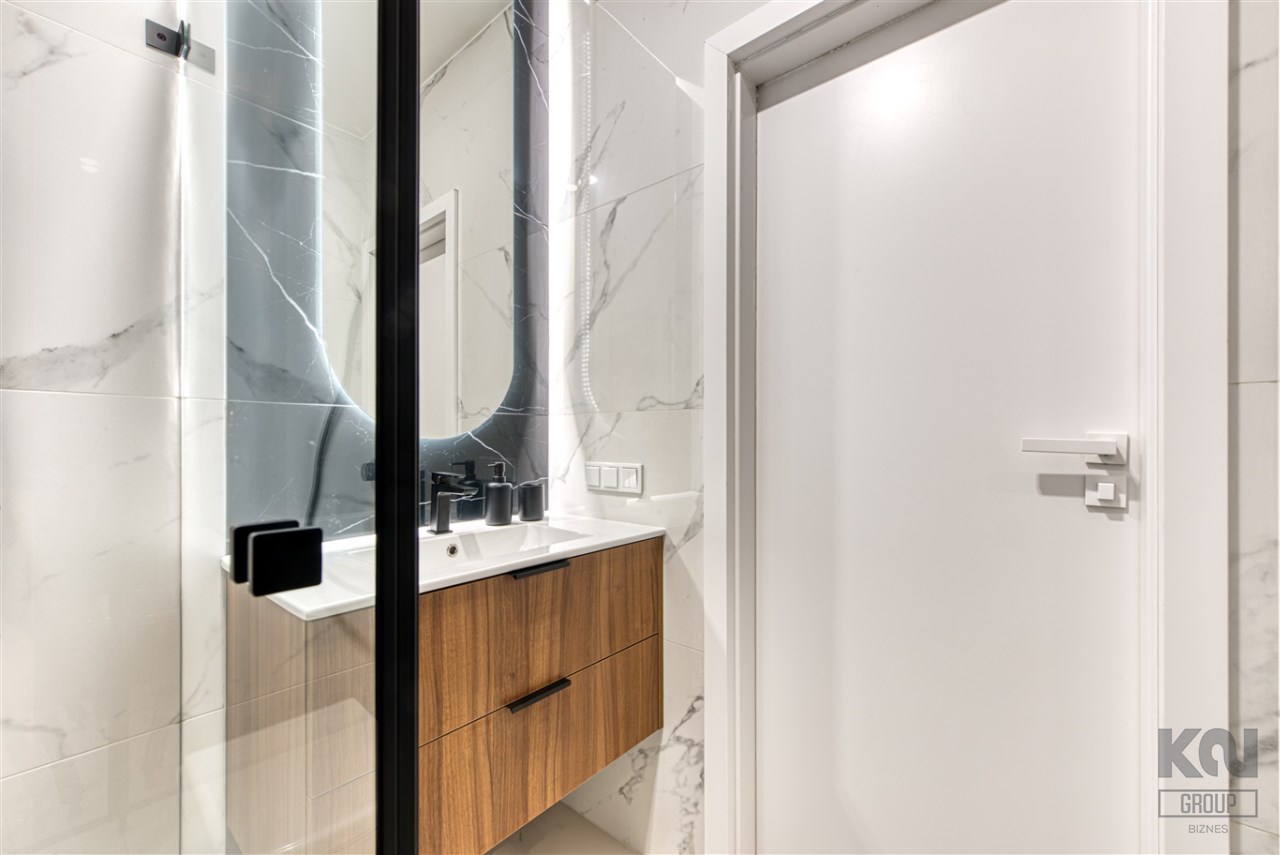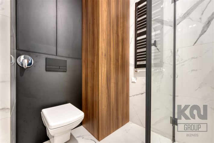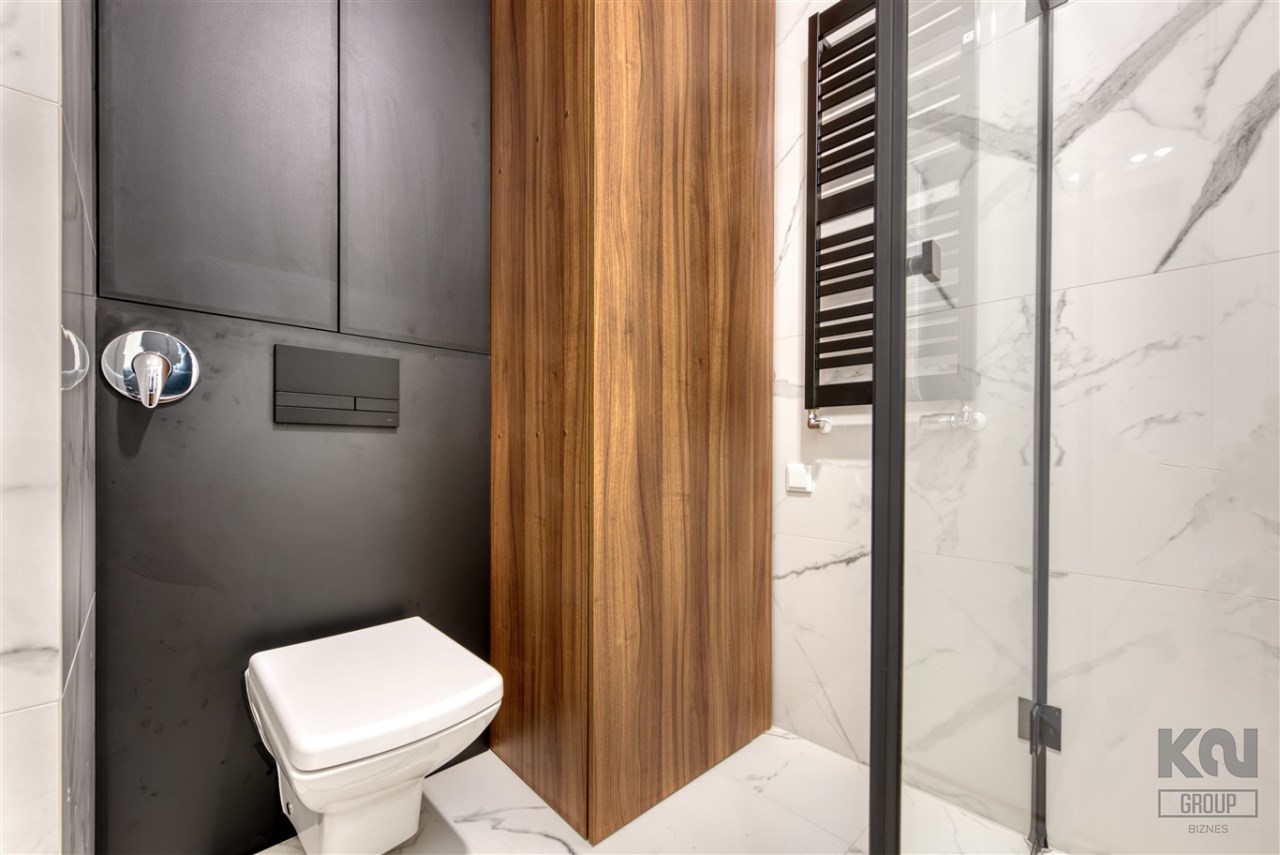 - łazienkę z WC (z funkcją bidetu) wyposażoną w kabinę prysznicową oraz