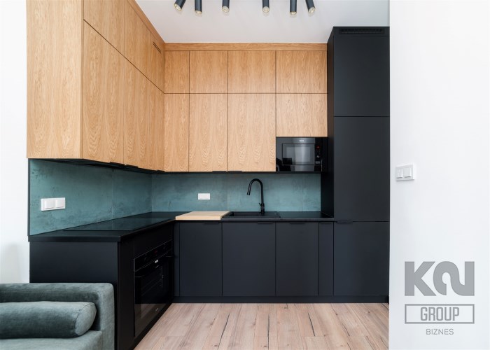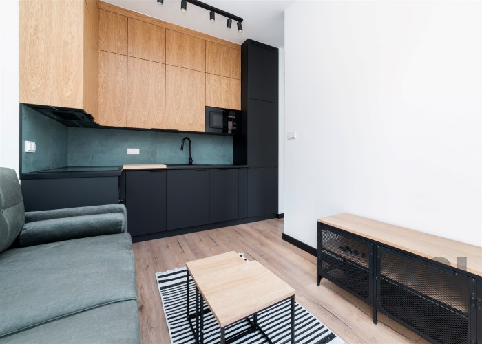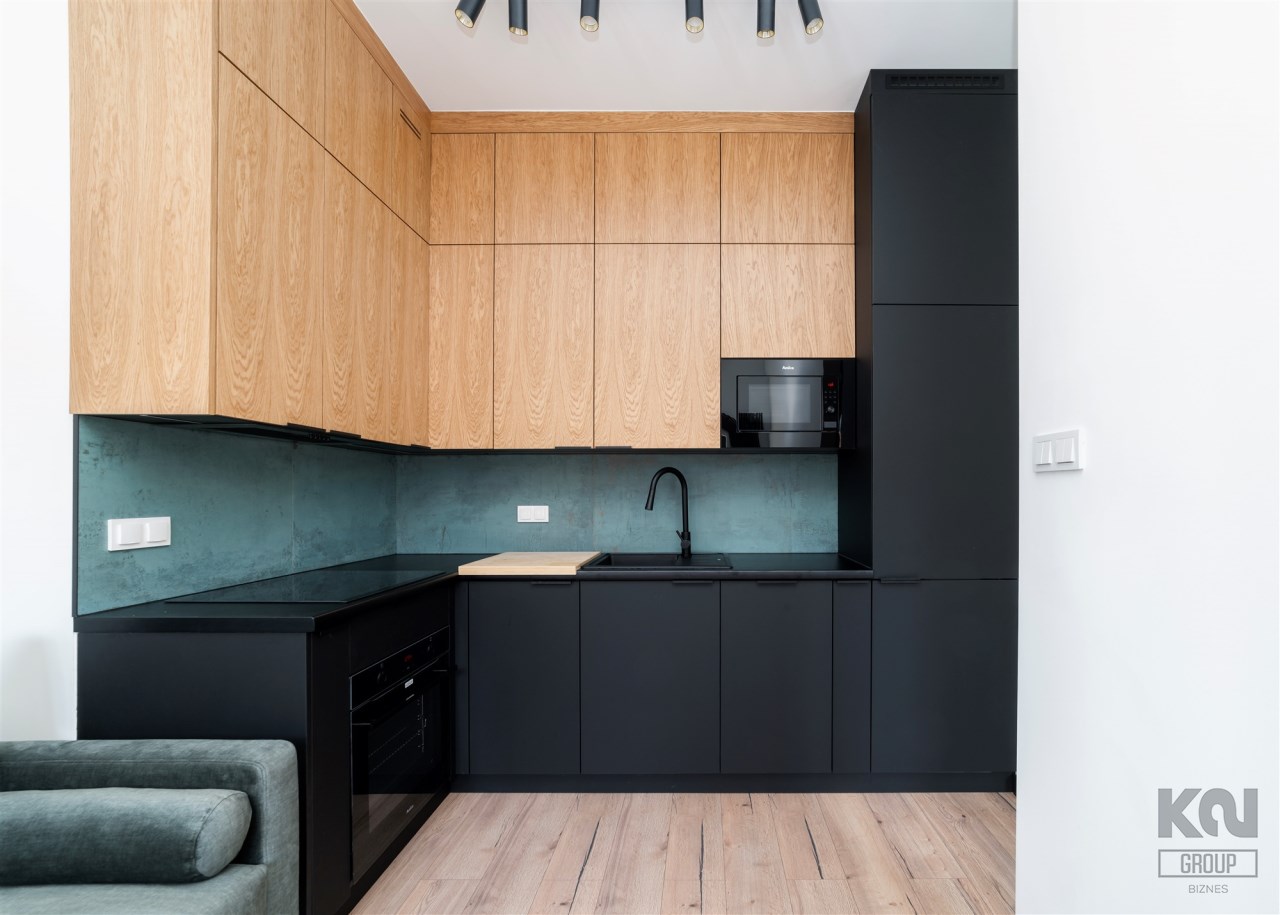 - kompletnie wyposażony aneks kuchenny ( okap, piekarnik, zmywarka, mikrofalówka, lodówko-zamrażarka);