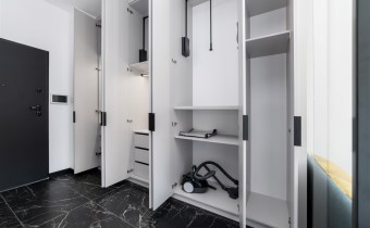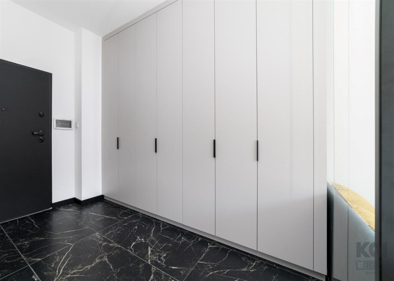 - przedpokój ze świetnie zaprojektowaną zabudowaną szafą.