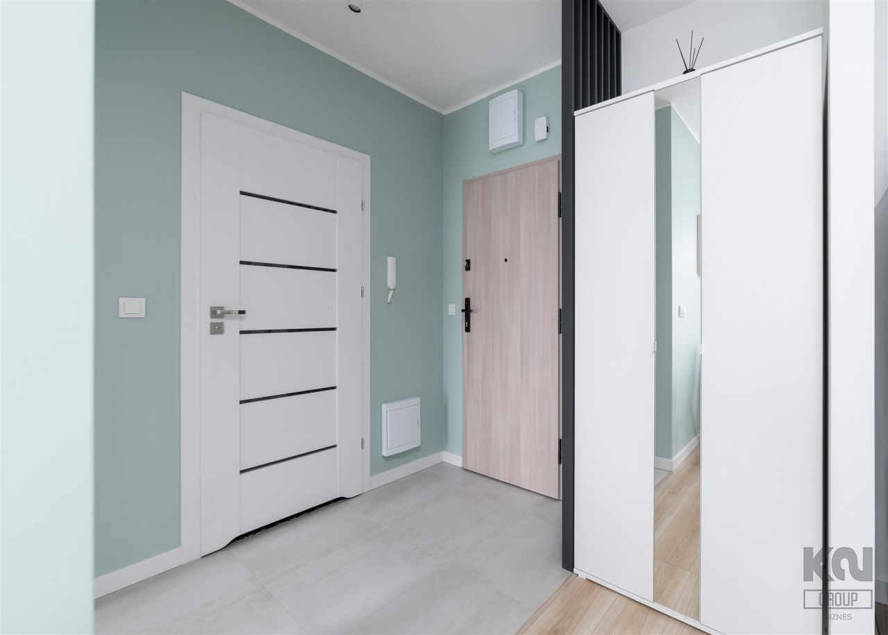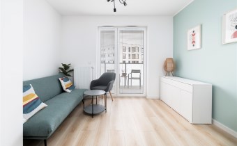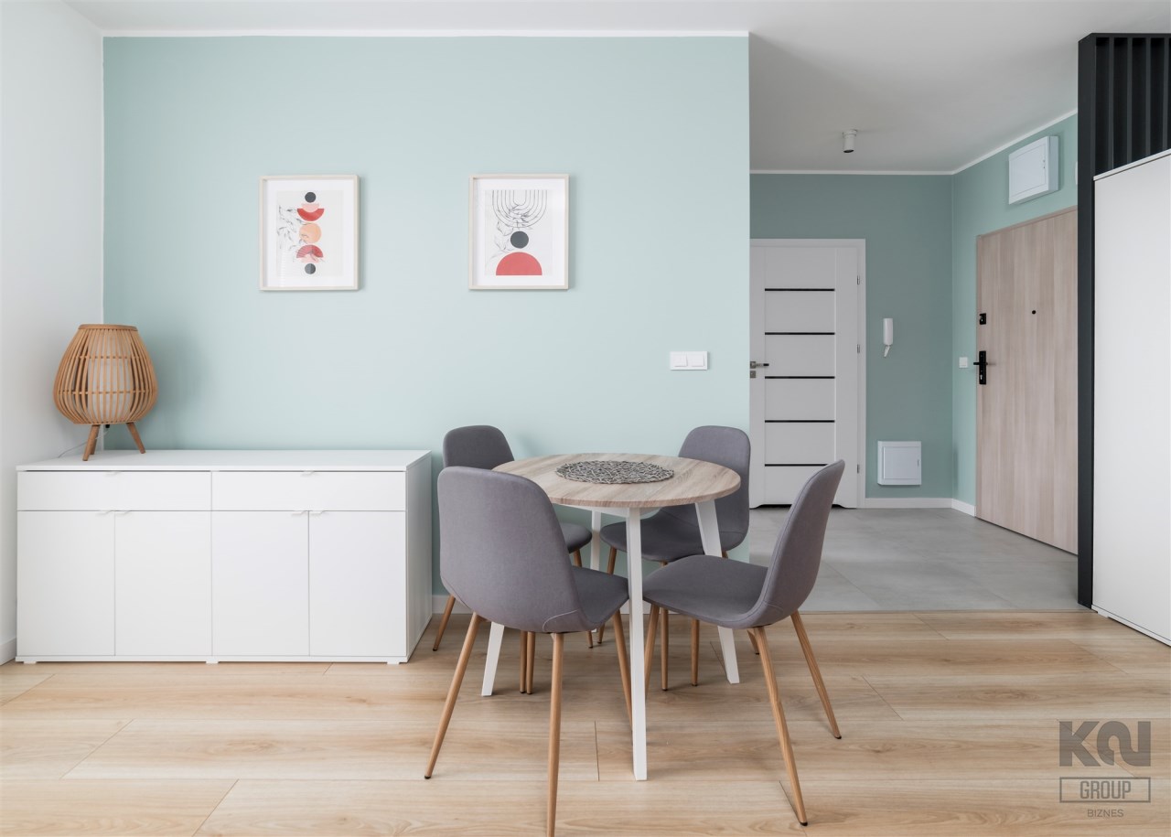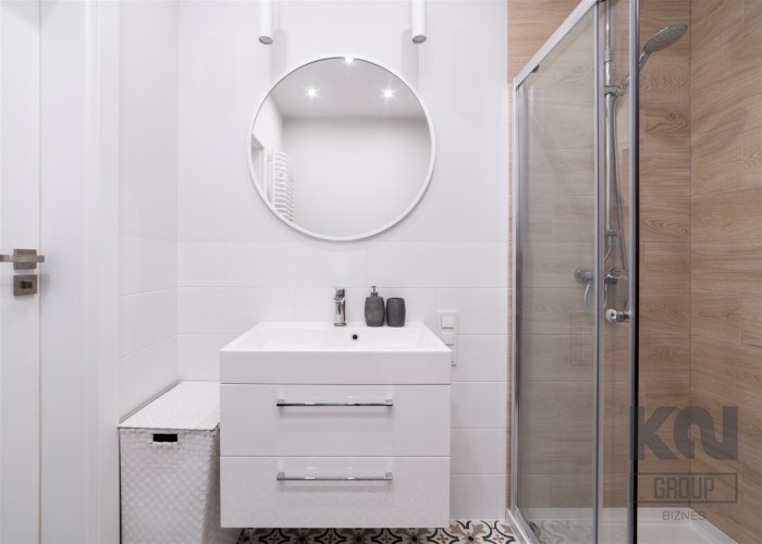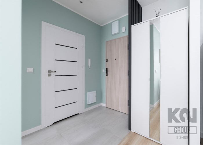 Wysoki standard wykończenia wnętrz oraz funkcjonalny układ apartamentu stanowią niewątpliwe atuty oferty.
