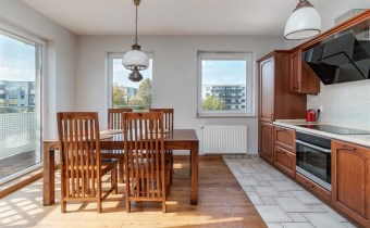 - słoneczny salon z wyjściem na duży, narożny balkon;
