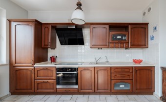 - aneks kuchenny wyposażony w płytę indukcyjną, okap, piekarnik, lodówkę z zamrażarką, zmywarkę oraz drobne wyposażenie kuchenne;