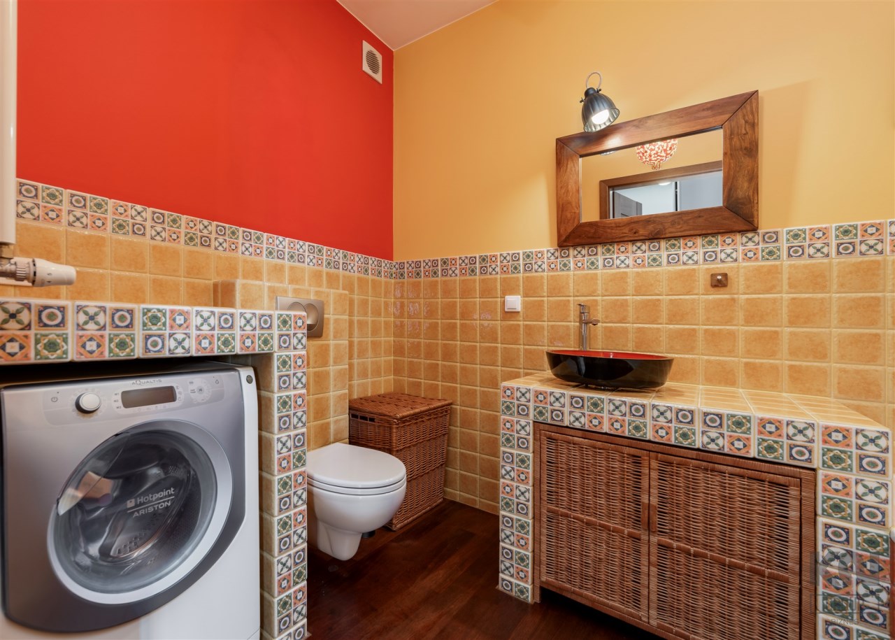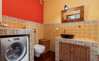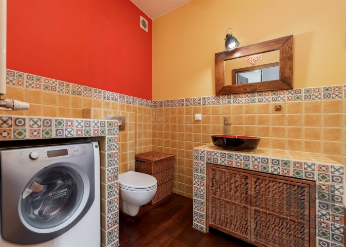 - łazienkę z WC wyposażoną w wannę oraz pralkę;