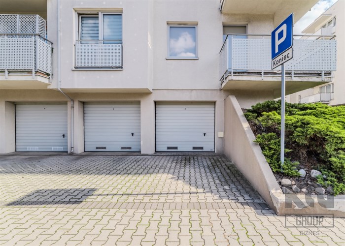 Do dyspozycji najemcy opcjonalnie pozostają dwa miejsca parkingowe- jedno w dużym, indywidualnym garażu wolnostojącym z dostępem do prądu i drugie wydzielone miejsce przed garażem (płatne dodatkowo 400 zł/mc za dwa) oraz komórka lokatorska.
