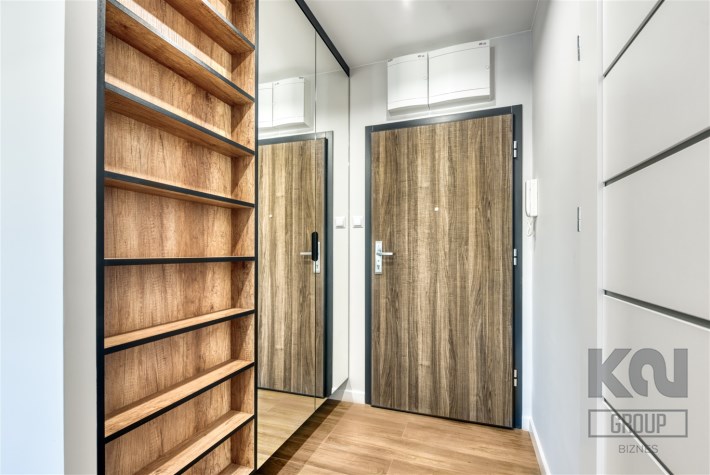- przedpokój z dużą szafą w zabudowie.
