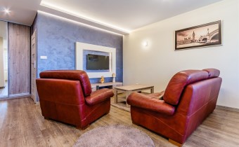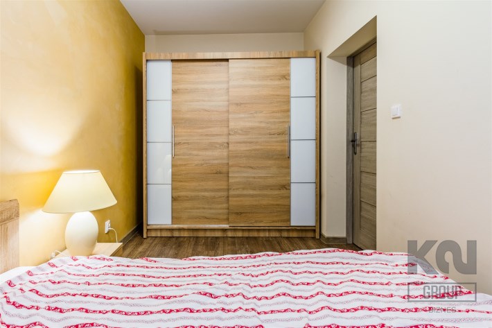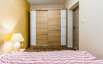- jasną sypialnię z podwójnym łóżkiem, dużą szafą i telewizorem;